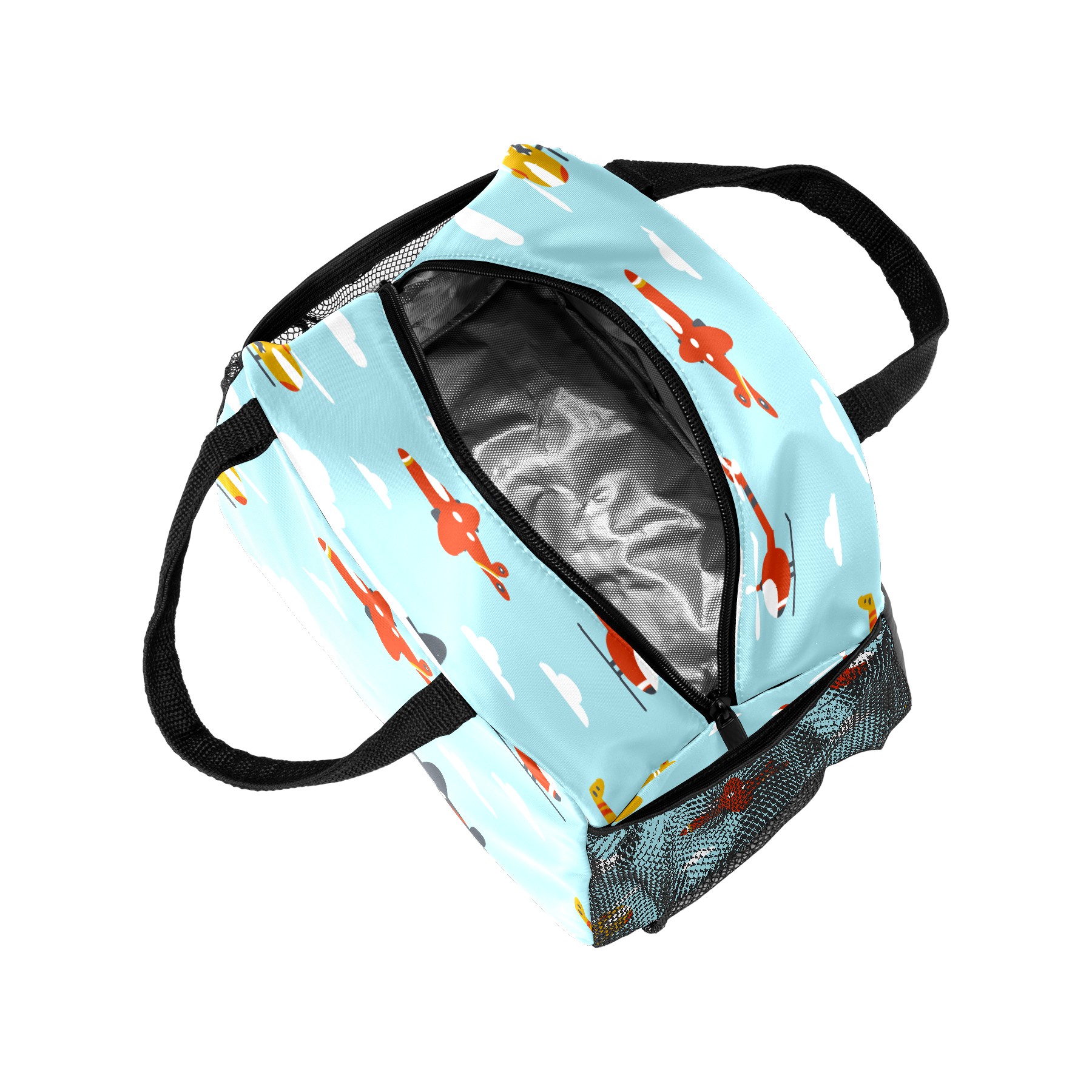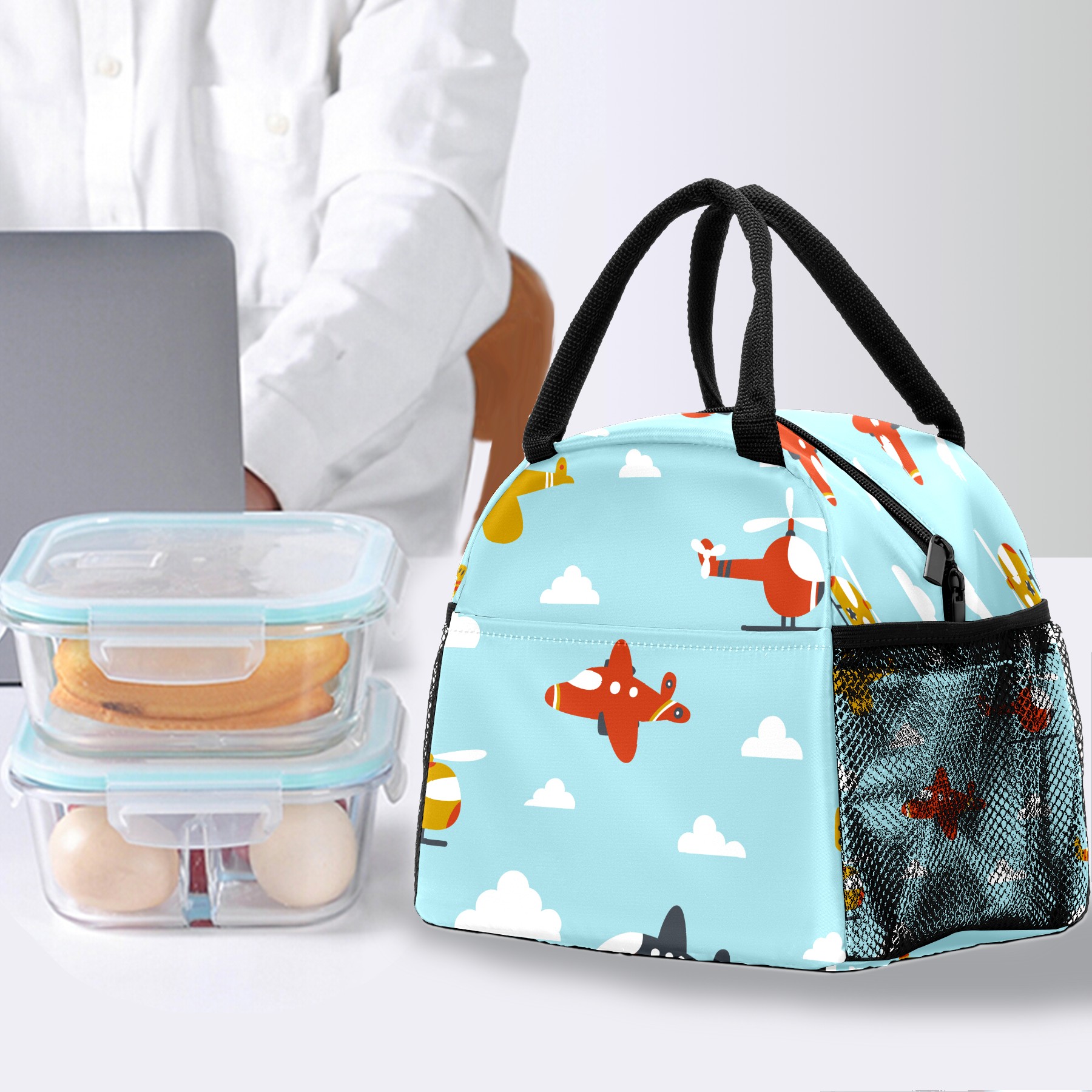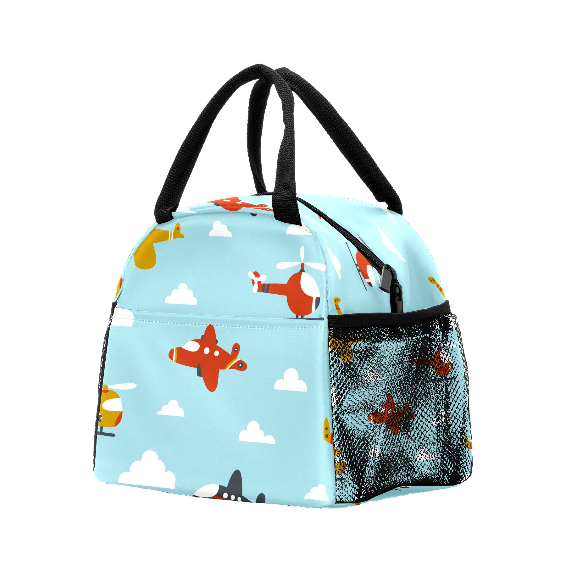 Lunch Bag for Women Men, Cartoon Helicopter Airplane Pattern Insulated Reusable Lunch Box Thermal Cooler Tote Bag for Work Picnic Hiking Travel Beach