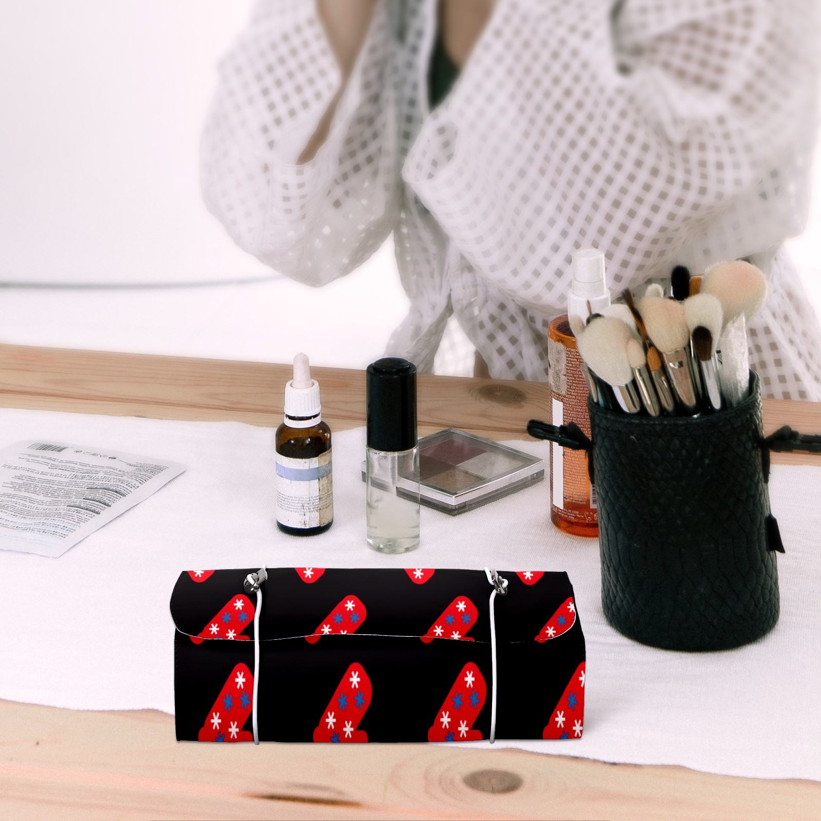 Makeup Bag Organizer Toiletry Bags for Traveling Travel Makeup Organizer Make Up Case Roll Up Toiletry Bag Makeup Bag Red Christmas GLoves Travel Cosmetic Bag