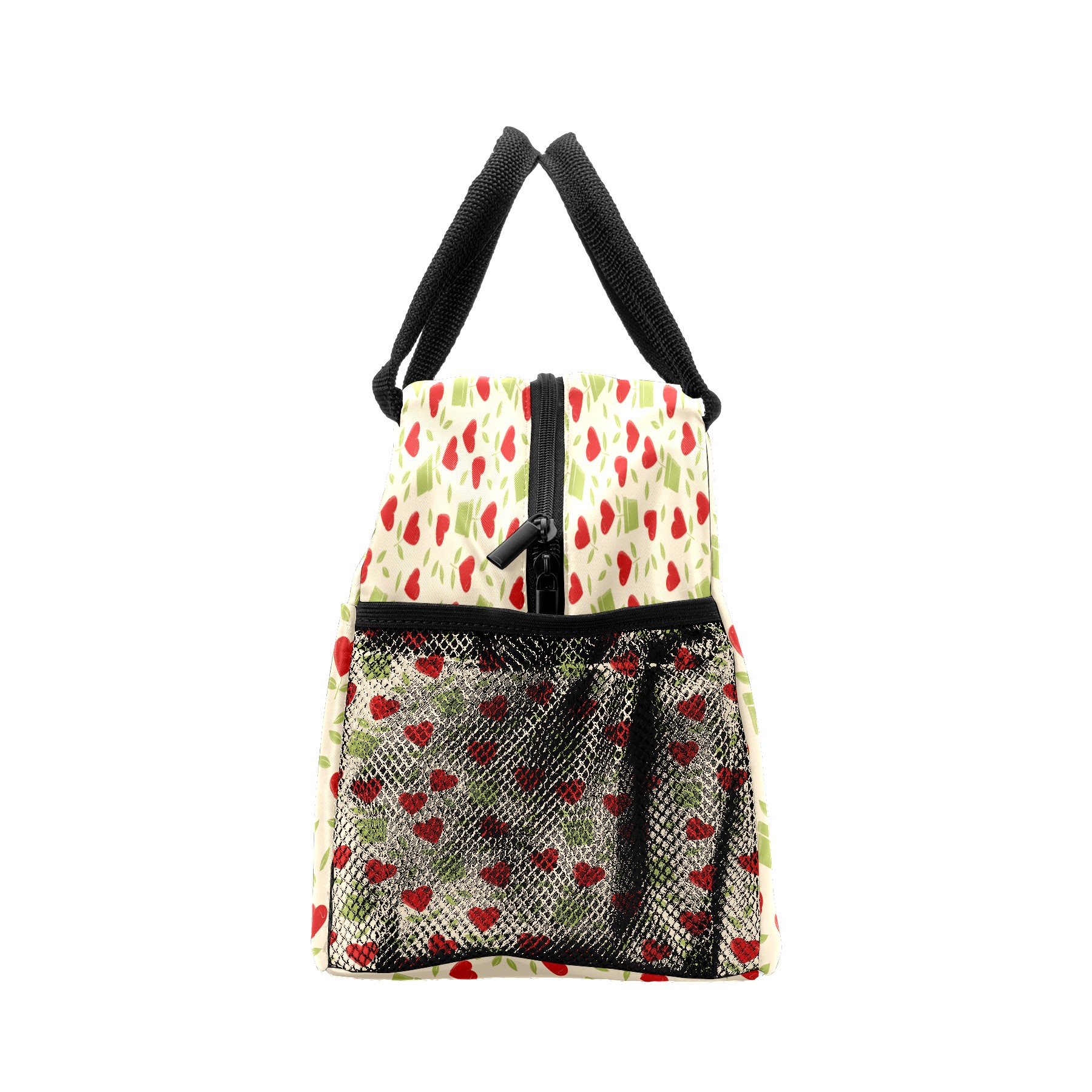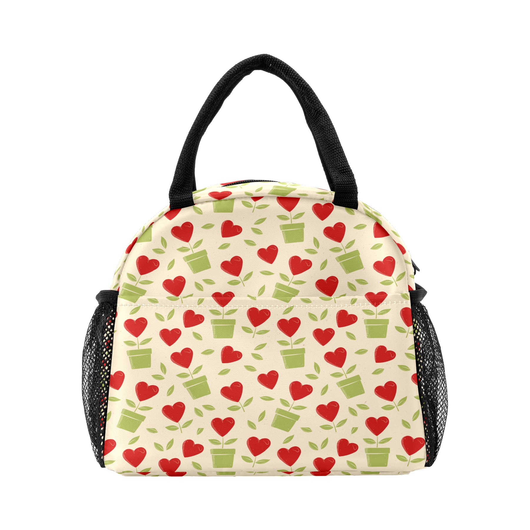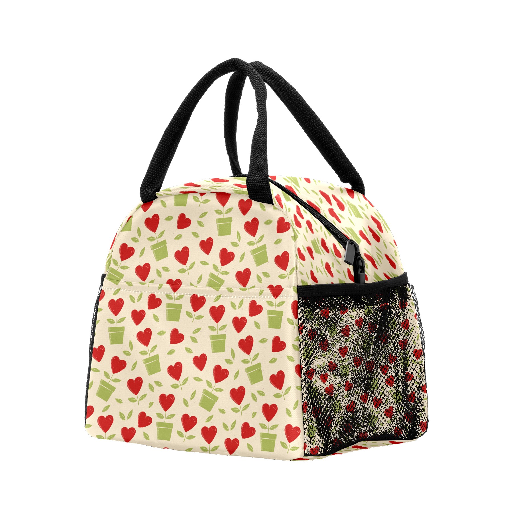 Lunch Bag for Women Men, Vintage Retro Valentine's Day Pattern Insulated Reusable Lunch Box Thermal Cooler Tote Bag for Work Picnic Hiking Travel Beach