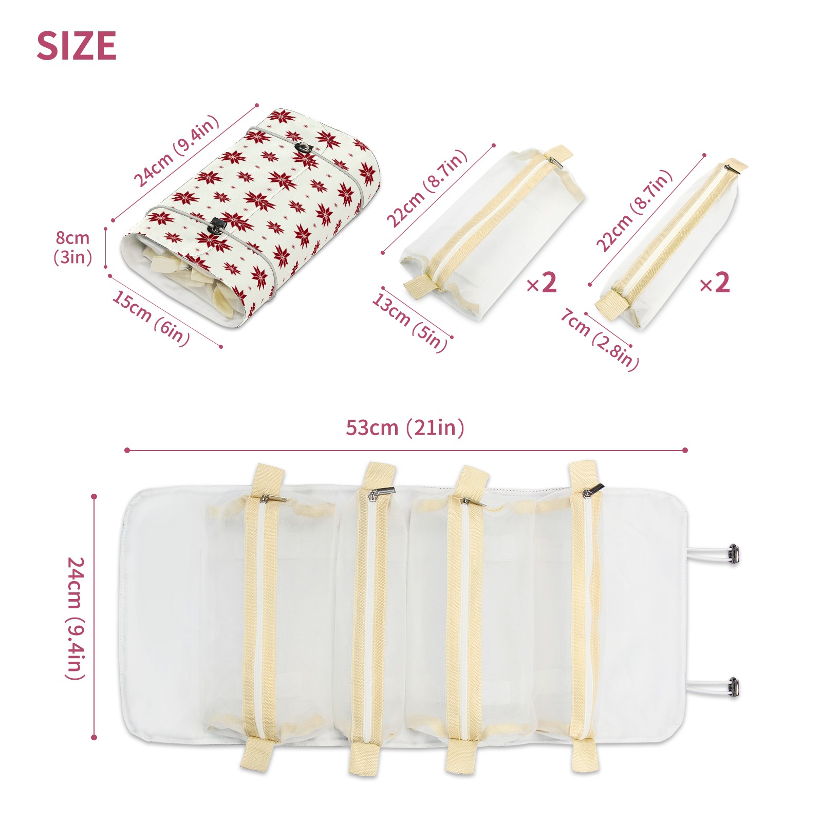 • <p> This is a nice and compact travel/ organizer bag. All the pouches are removable. This makes it very easy to use or pull out what you need in the moment, and not get stuck rummaging through a bag and not being able to find your items. It folds up nicely, and has 2 bungee straps that you can sinch tight to hold. It works great for traveling. </p> <p> </p> <p><b> Notes:&nbsp; </b></p> <p> 1.Due to the difference between different monitors,the picture may not reflect the actual color of the item. We guarantee the style is the same as shown in the pictures.&nbsp; </p> <p> 2.Due to the manual measurement and different measurement methods, please allow 1-3cm deviation.Thanks! </p>