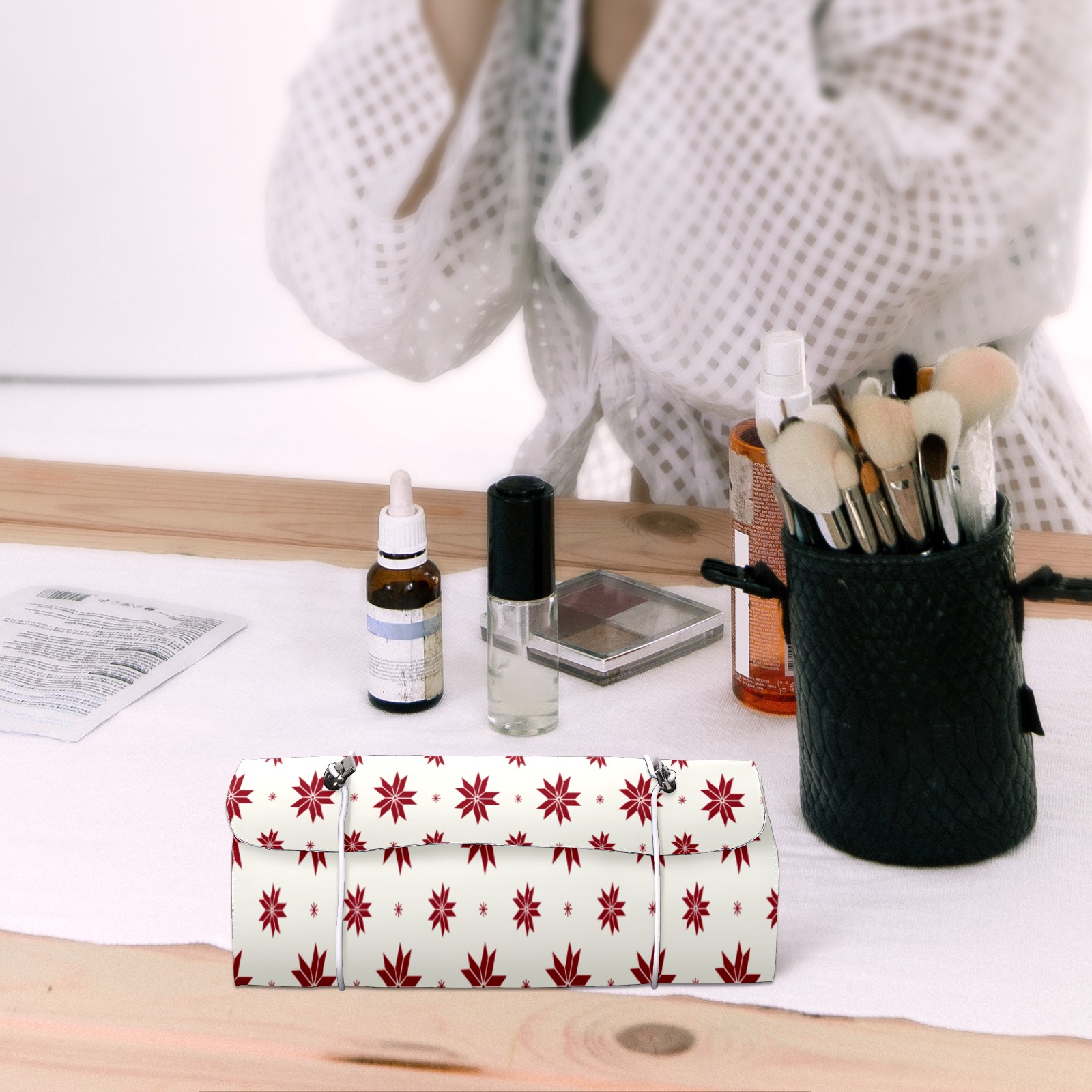 Makeup Bag Organizer Toiletry Bags for Traveling Travel Makeup Organizer Make Up Case Roll Up Toiletry Bag Makeup Bag Red Christmas Flowers-01 Travel Cosmetic Bag