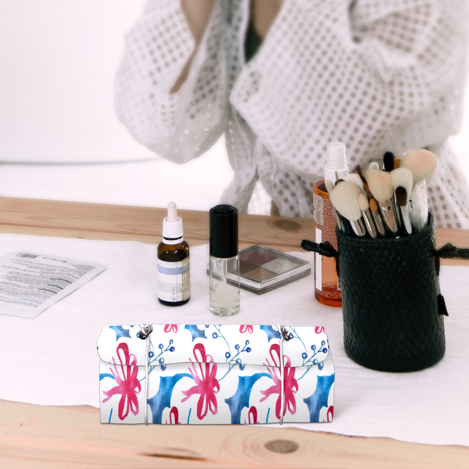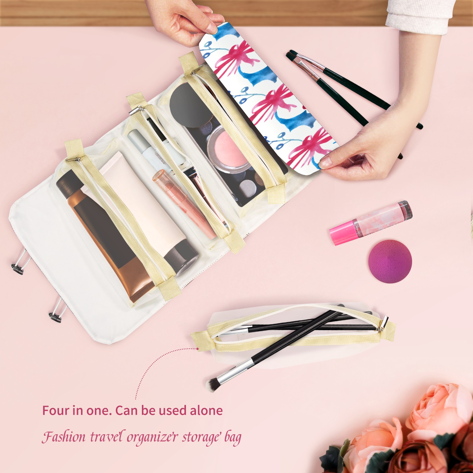 Makeup Bag Organizer Toiletry Bags for Traveling Travel Makeup Organizer Make Up Case Roll Up Toiletry Bag Makeup Bag Red Bow Pattern-01 Travel Cosmetic Bag