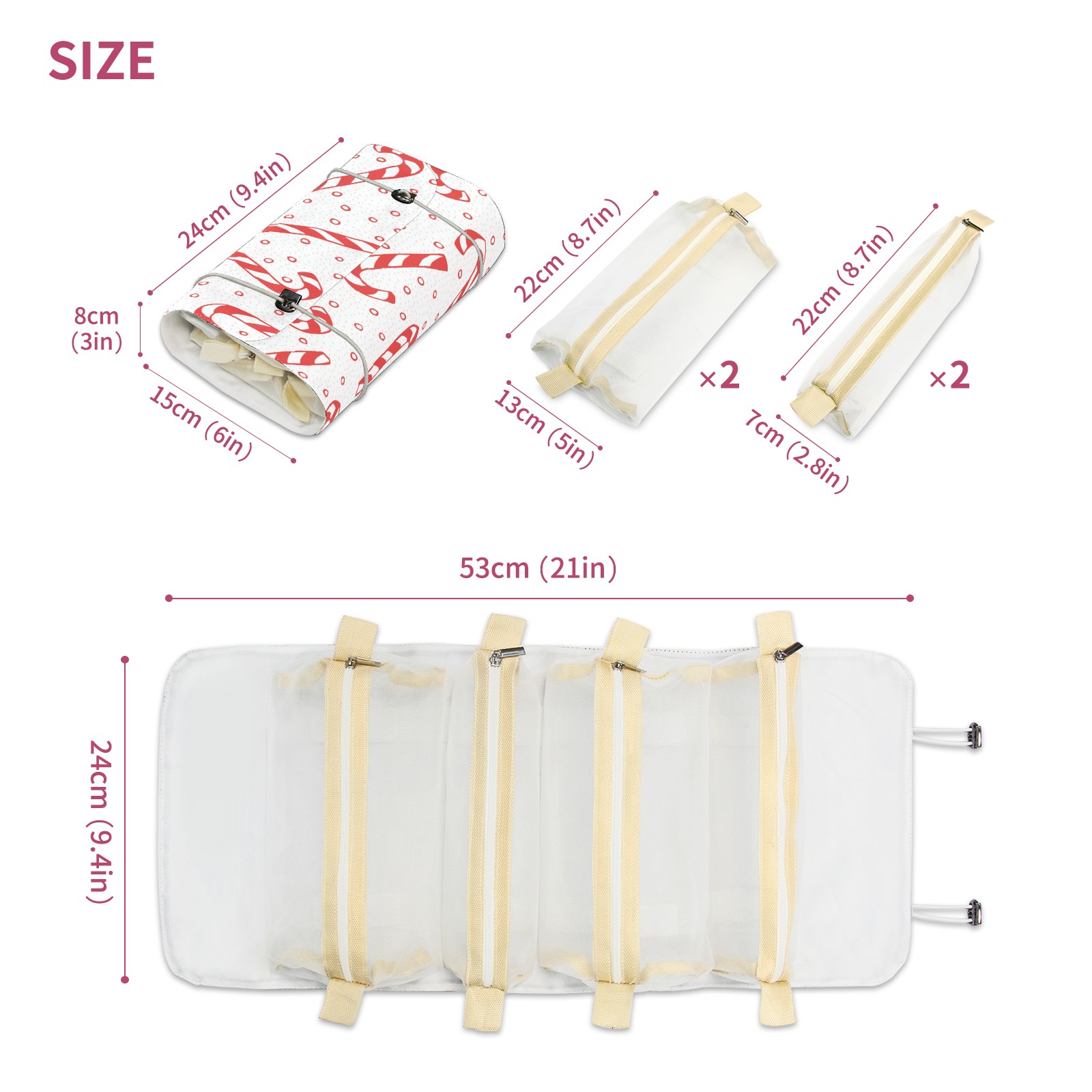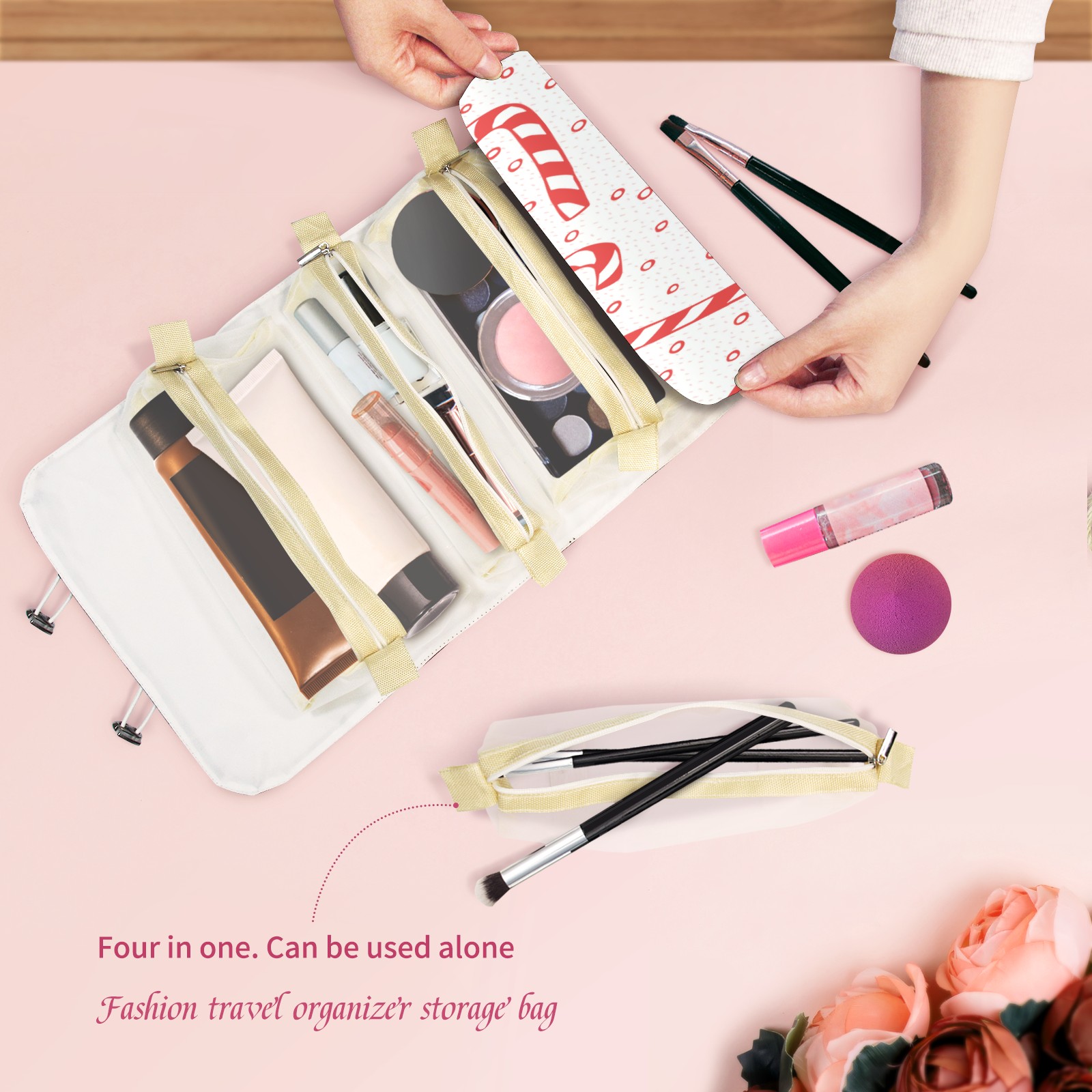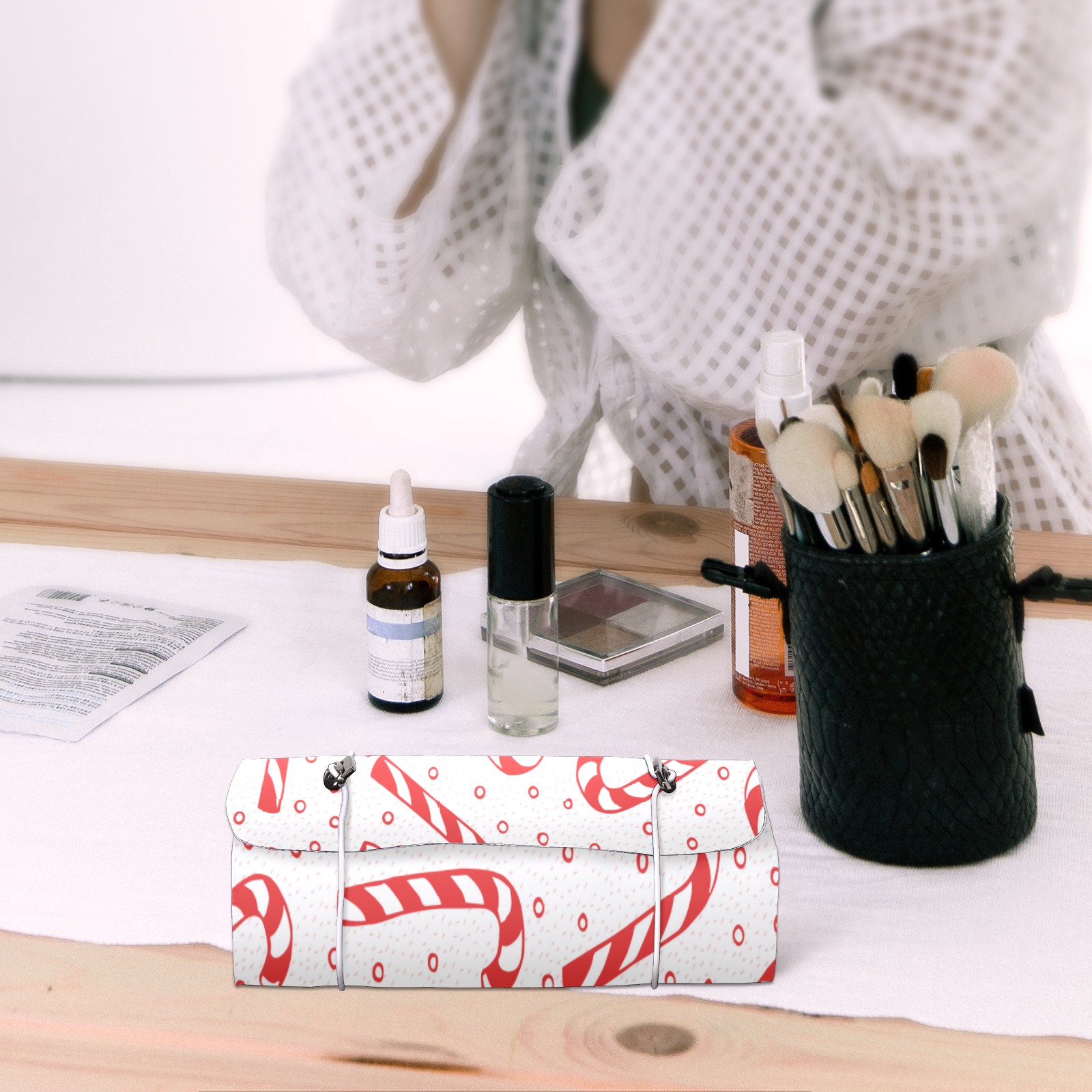 Makeup Bag Organizer Toiletry Bags for Traveling Travel Makeup Organizer Make Up Case Roll Up Toiletry Bag Makeup Bag Red Candy Cane Pattern Travel Cosmetic Bag