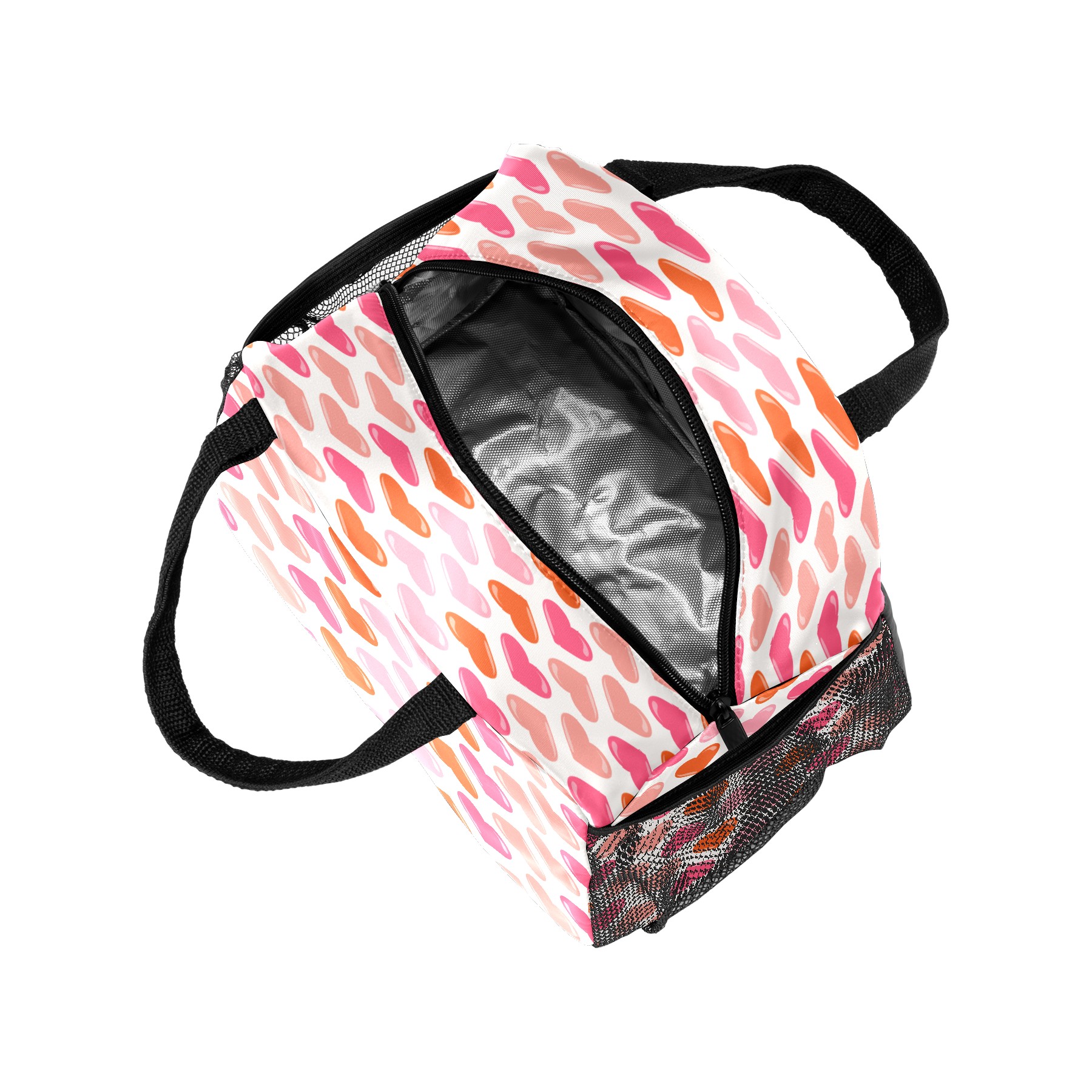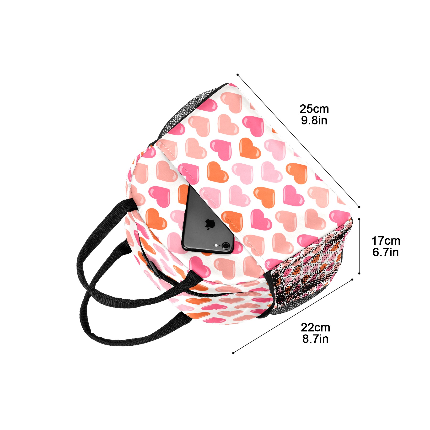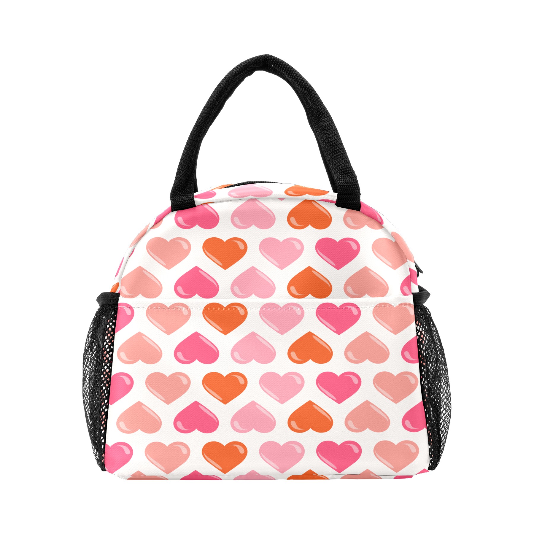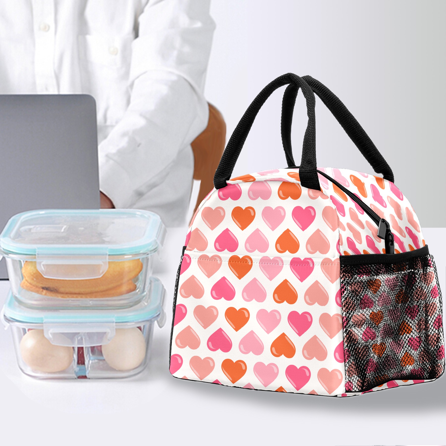 Lunch Bag for Women Men, Valentine's Day Red Orange Love Pattern Insulated Reusable Lunch Box Thermal Cooler Tote Bag for Work Picnic Hiking Travel Beach