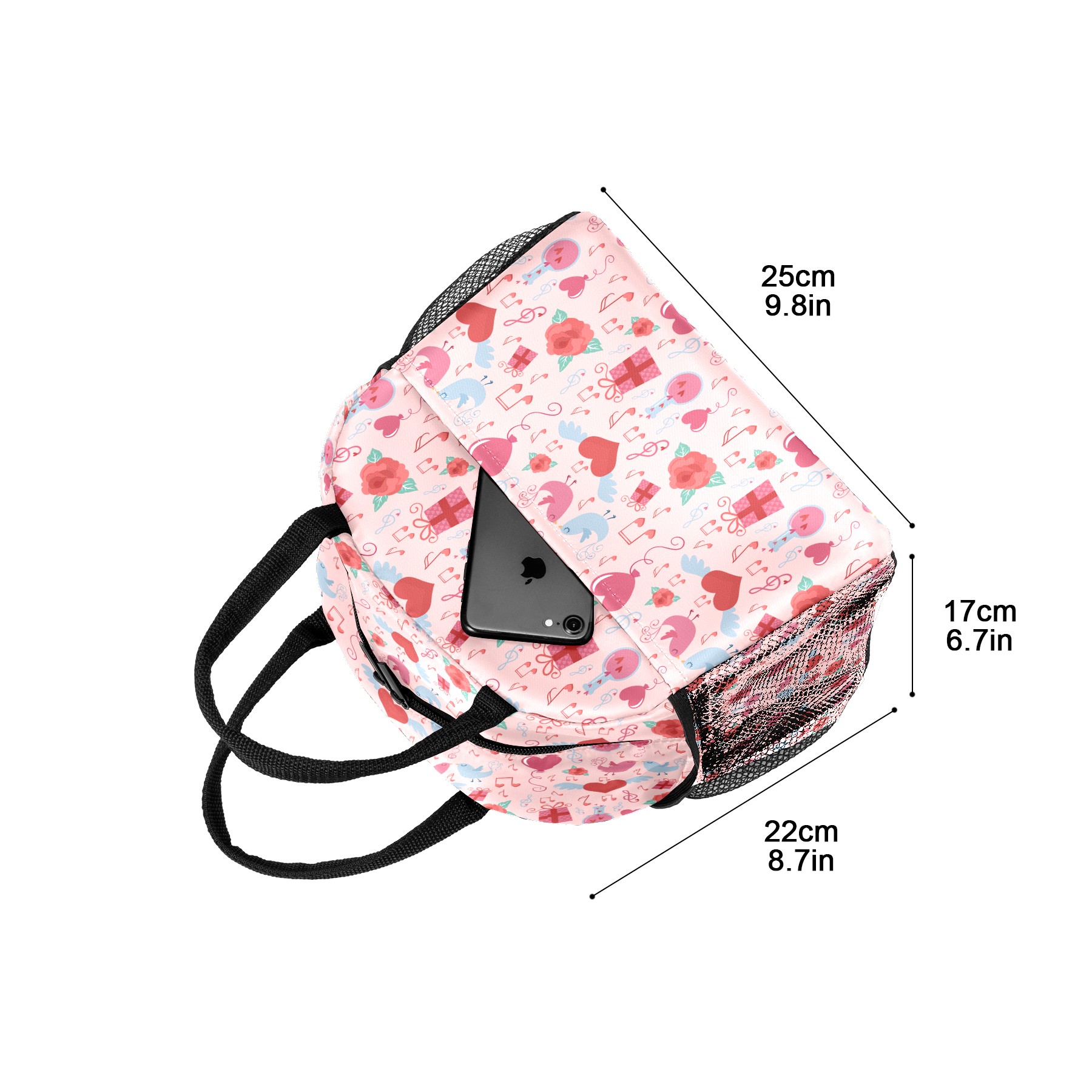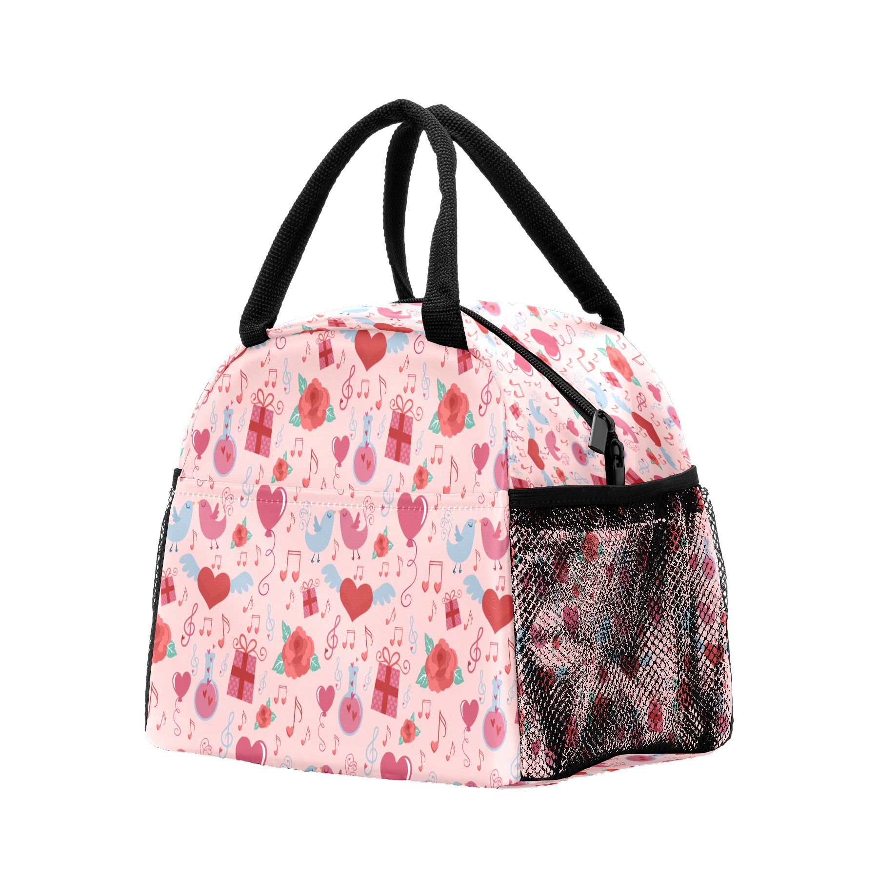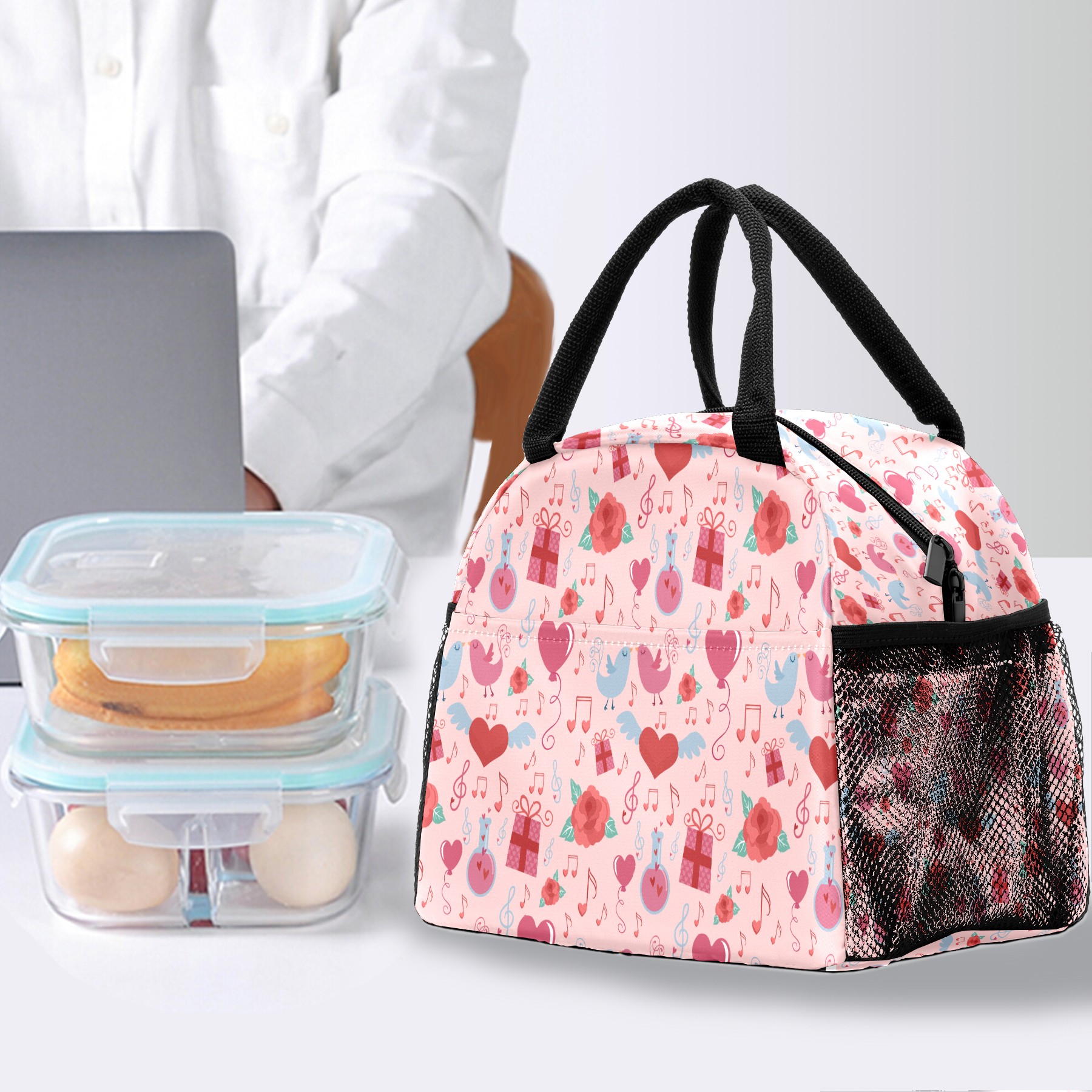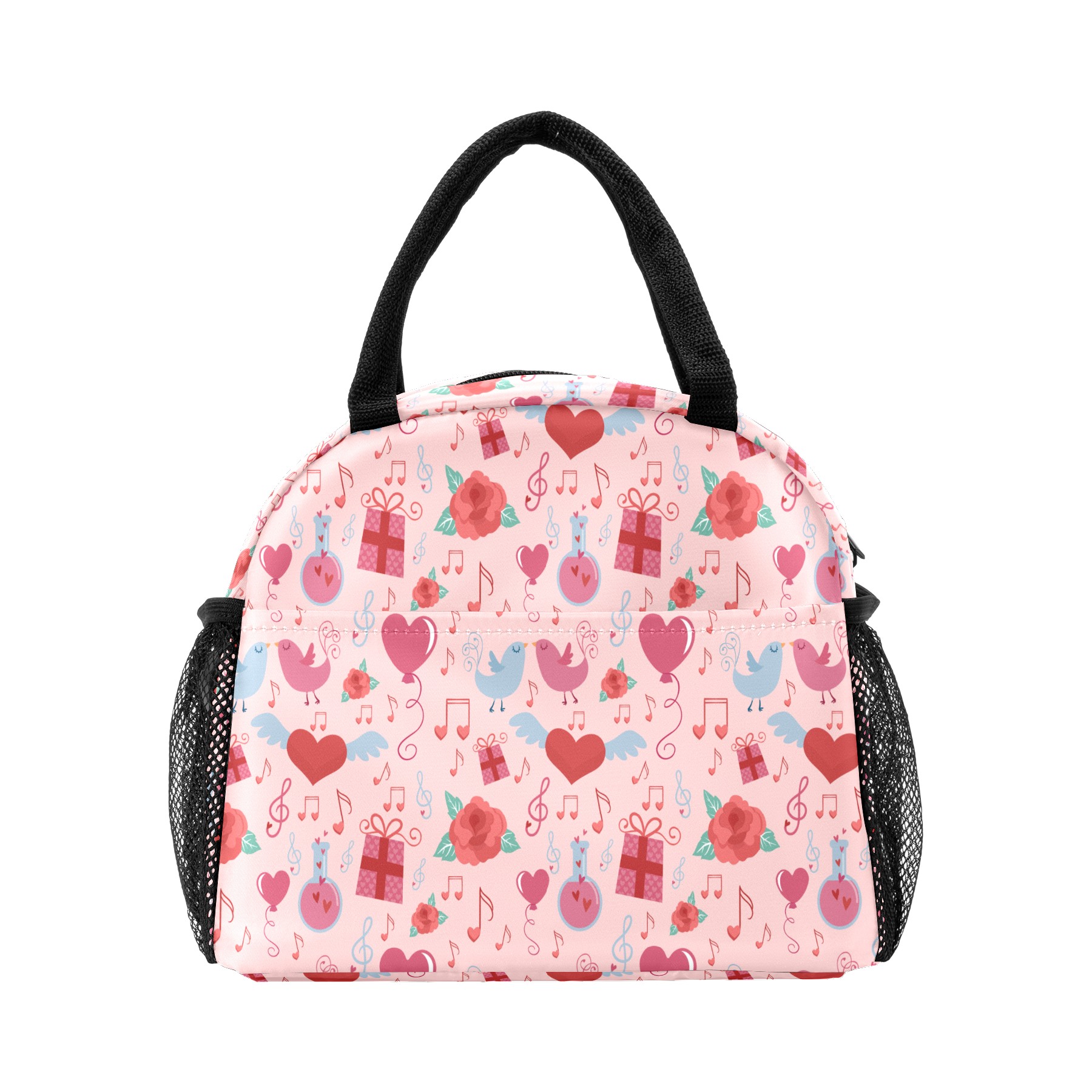 Lunch Bag for Women Men, Valentines Retro Love Music Notes Birds Pattern Insulated Reusable Lunch Box Thermal Cooler Tote Bag for Work Picnic Hiking Travel Beach