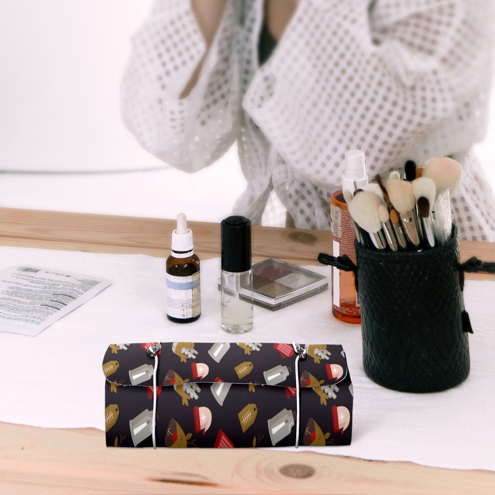 Makeup Bag Organizer Toiletry Bags for Traveling Travel Makeup Organizer Make Up Case Roll Up Toiletry Bag Makeup Bag Raindeer Christmas Hat-01 Travel Cosmetic Bag