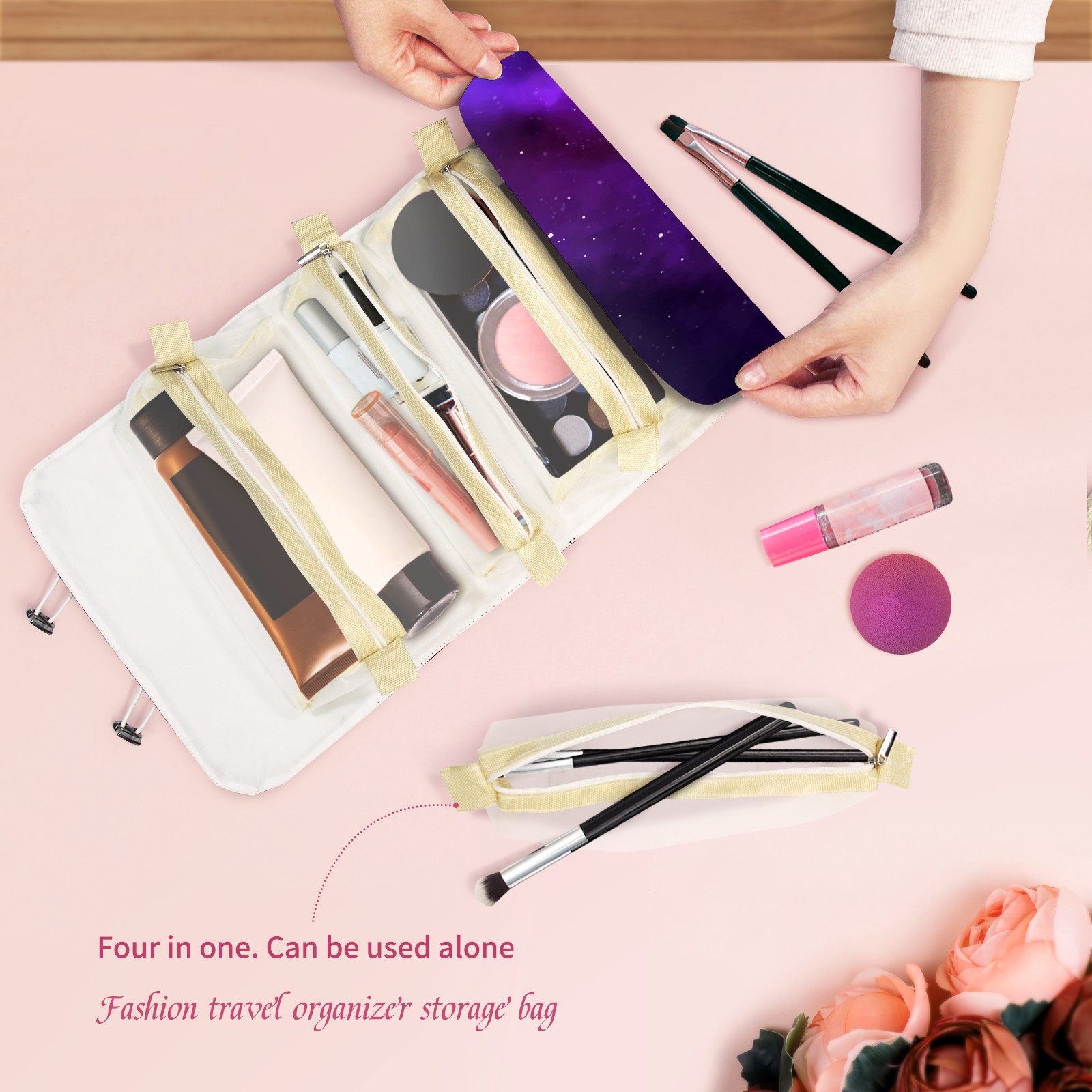 Makeup Bag Organizer Toiletry Bags for Traveling Travel Makeup Organizer Make Up Case Roll Up Toiletry Bag Makeup Bag Purple Galaxy-01 Travel Cosmetic Bag