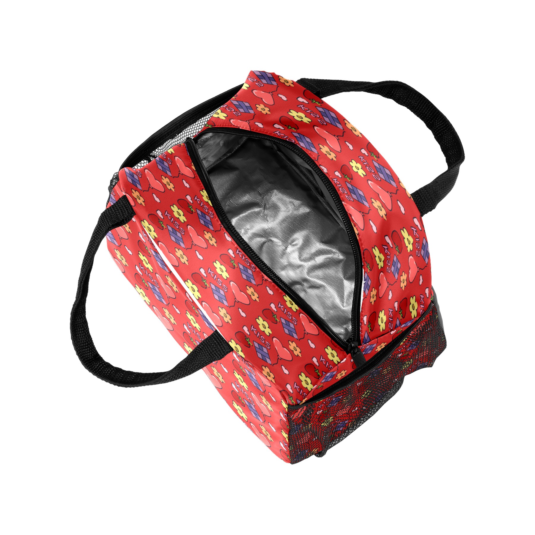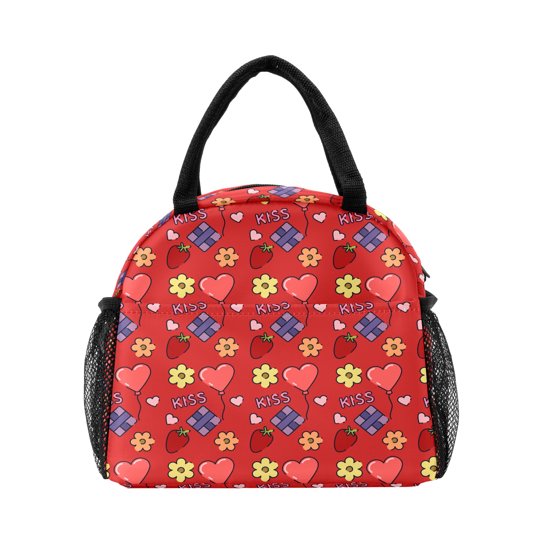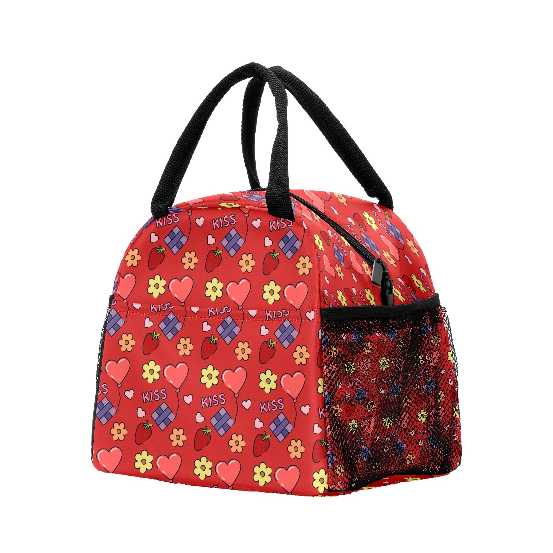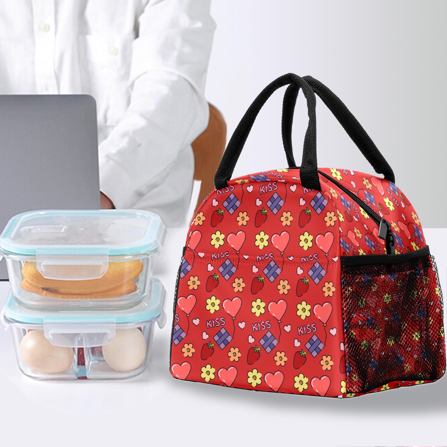 Lunch Bag for Women Men, Valentine's Day Kiss Love Strawberry Balloon Insulated Reusable Lunch Box Thermal Cooler Tote Bag for Work Picnic Hiking Travel Beach