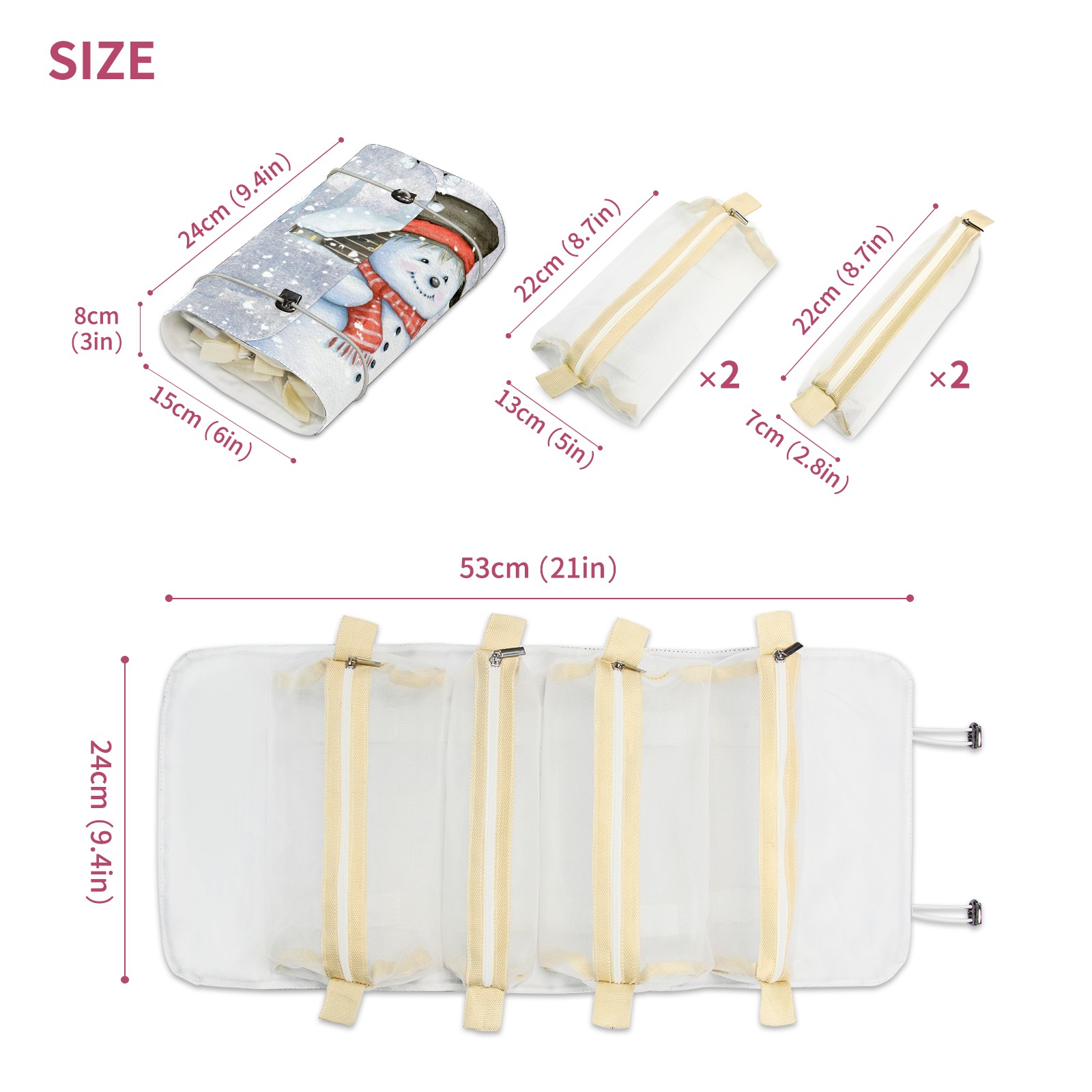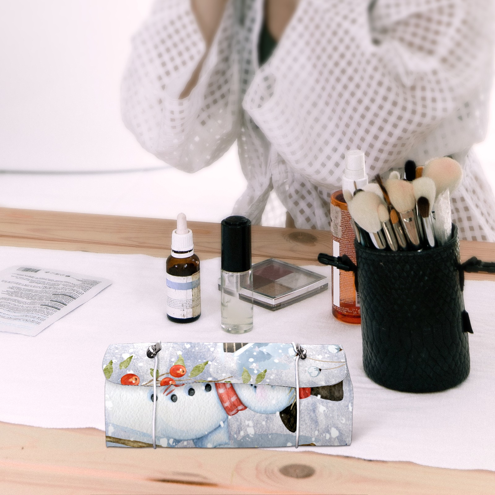 Makeup Bag Organizer Toiletry Bags for Traveling Travel Makeup Organizer Make Up Case Roll Up Toiletry Bag Makeup Bag Painting Snowman Travel Cosmetic Bag