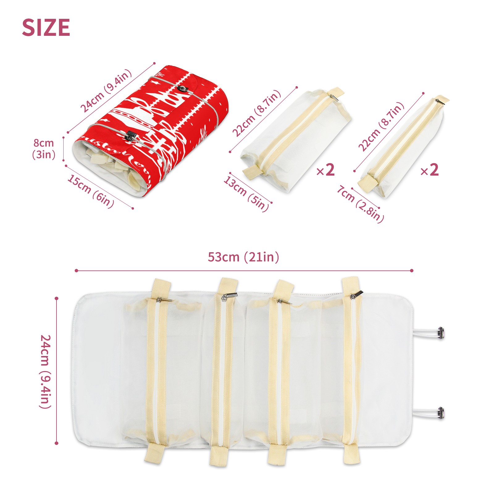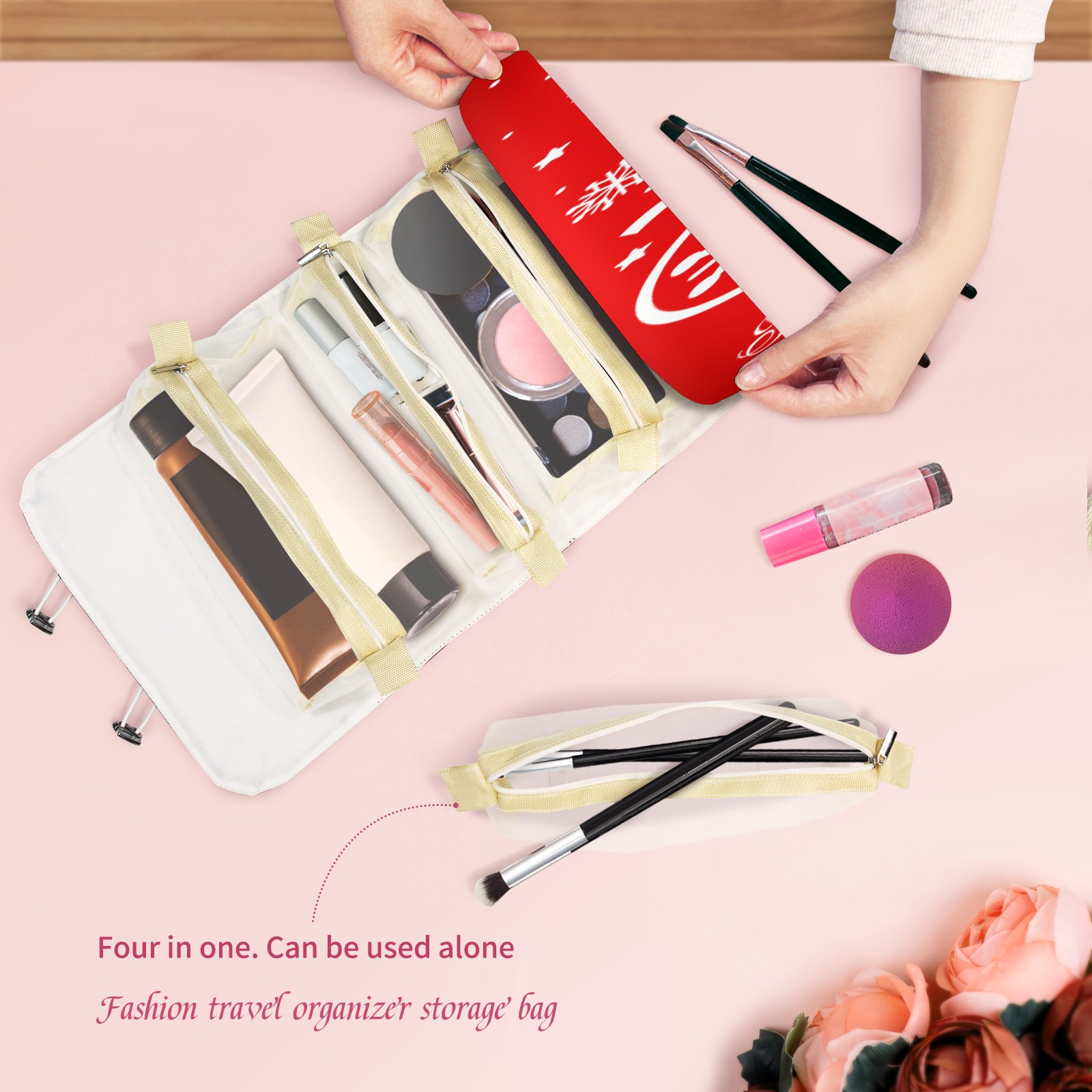 Makeup Bag Organizer Toiletry Bags for Traveling Travel Makeup Organizer Make Up Case Roll Up Toiletry Bag Makeup Bag Merry Christmas Red Ornament-02 Travel Cosmetic Bag