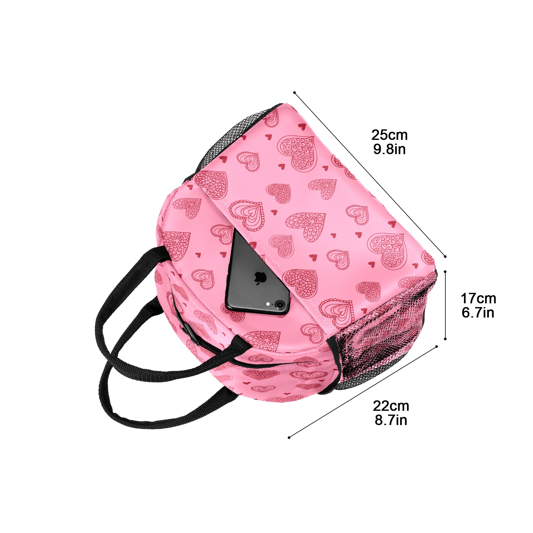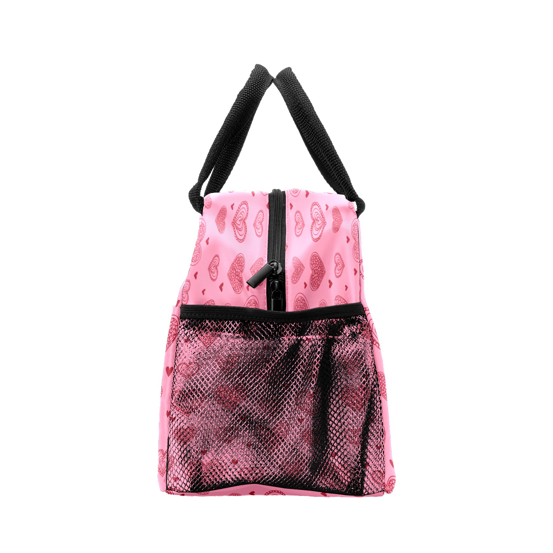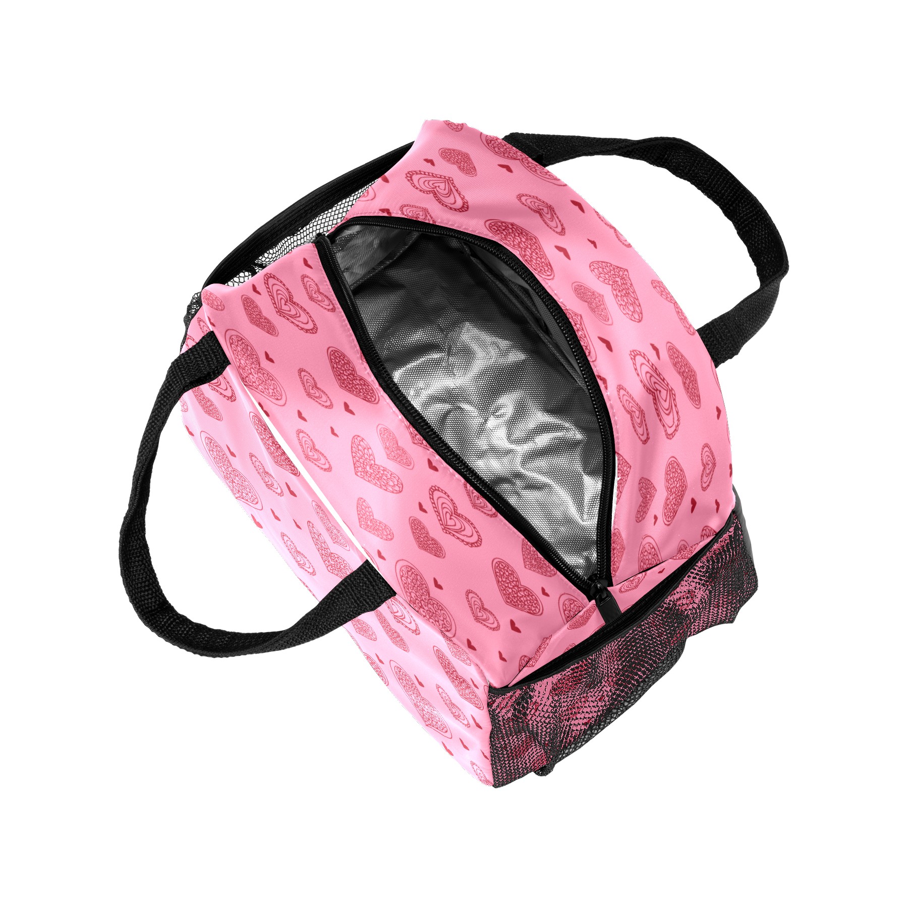 Lunch Bag for Women Men, Retro Pink Love Heart Pattern Insulated Reusable Lunch Box Thermal Cooler Tote Bag for Work Picnic Hiking Travel Beach