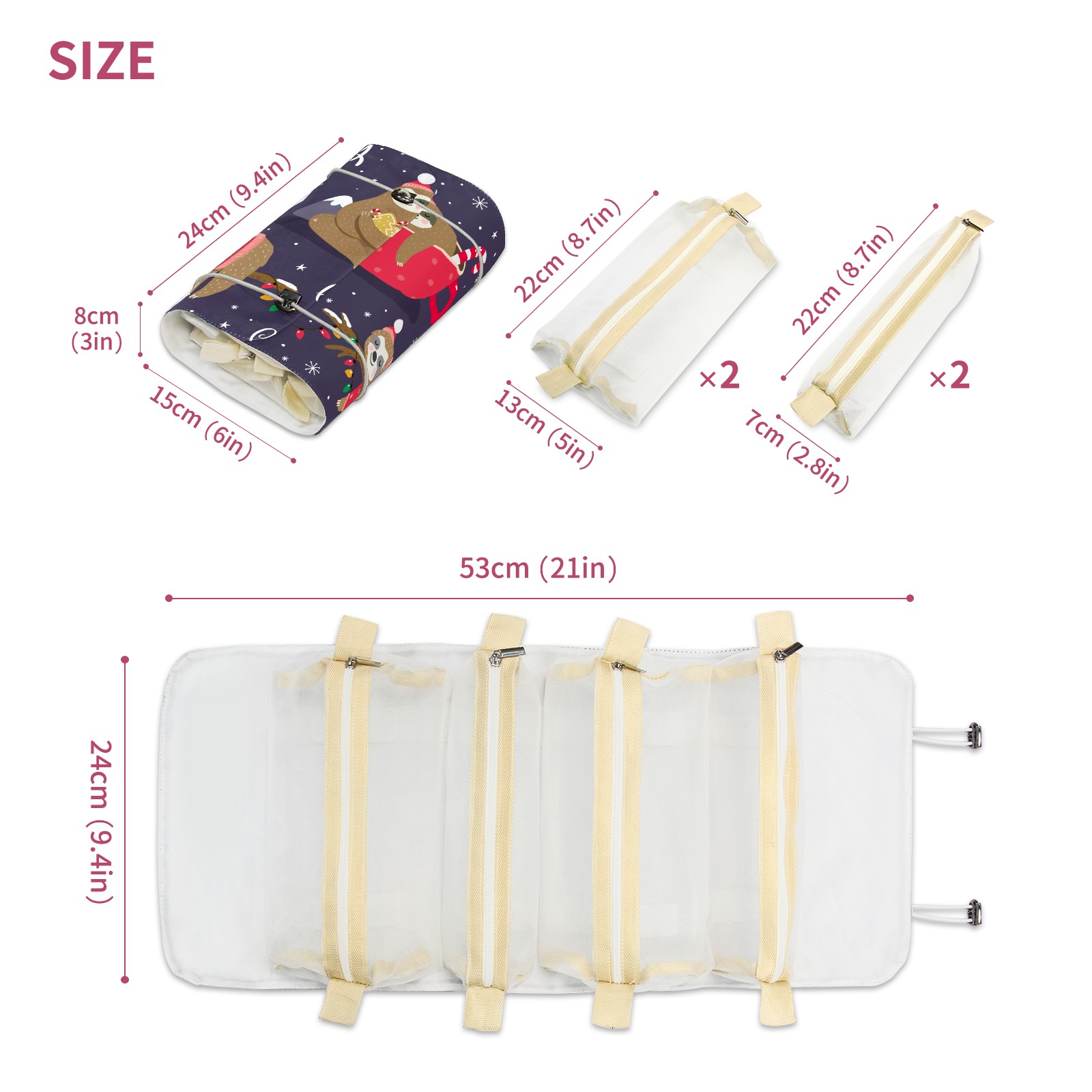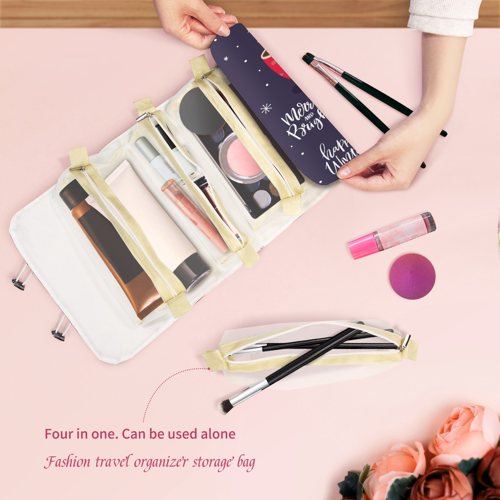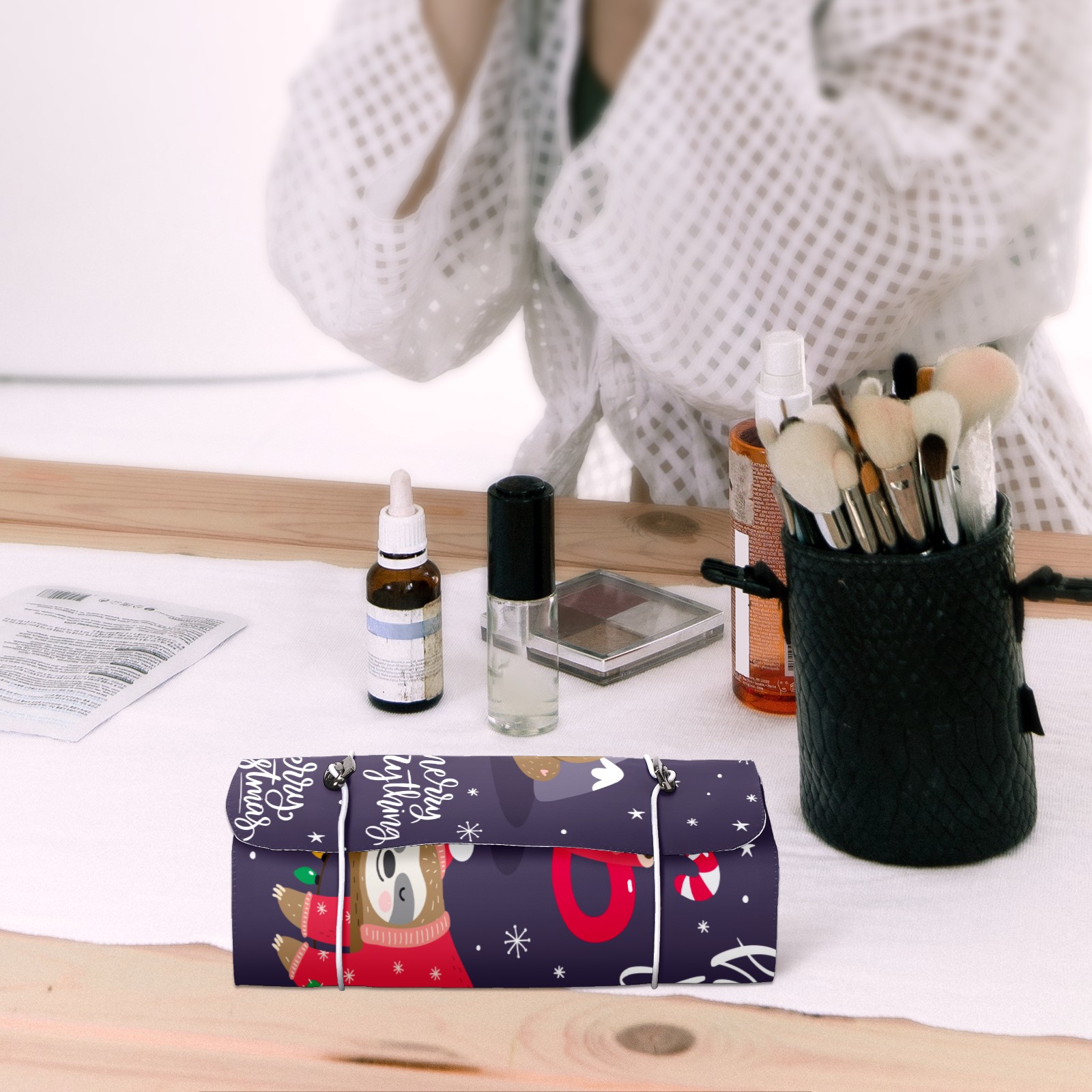 Makeup Bag Organizer Toiletry Bags for Traveling Travel Makeup Organizer Make Up Case Roll Up Toiletry Bag Makeup Bag Merry Christmas Lovely Sloth Travel Cosmetic Bag