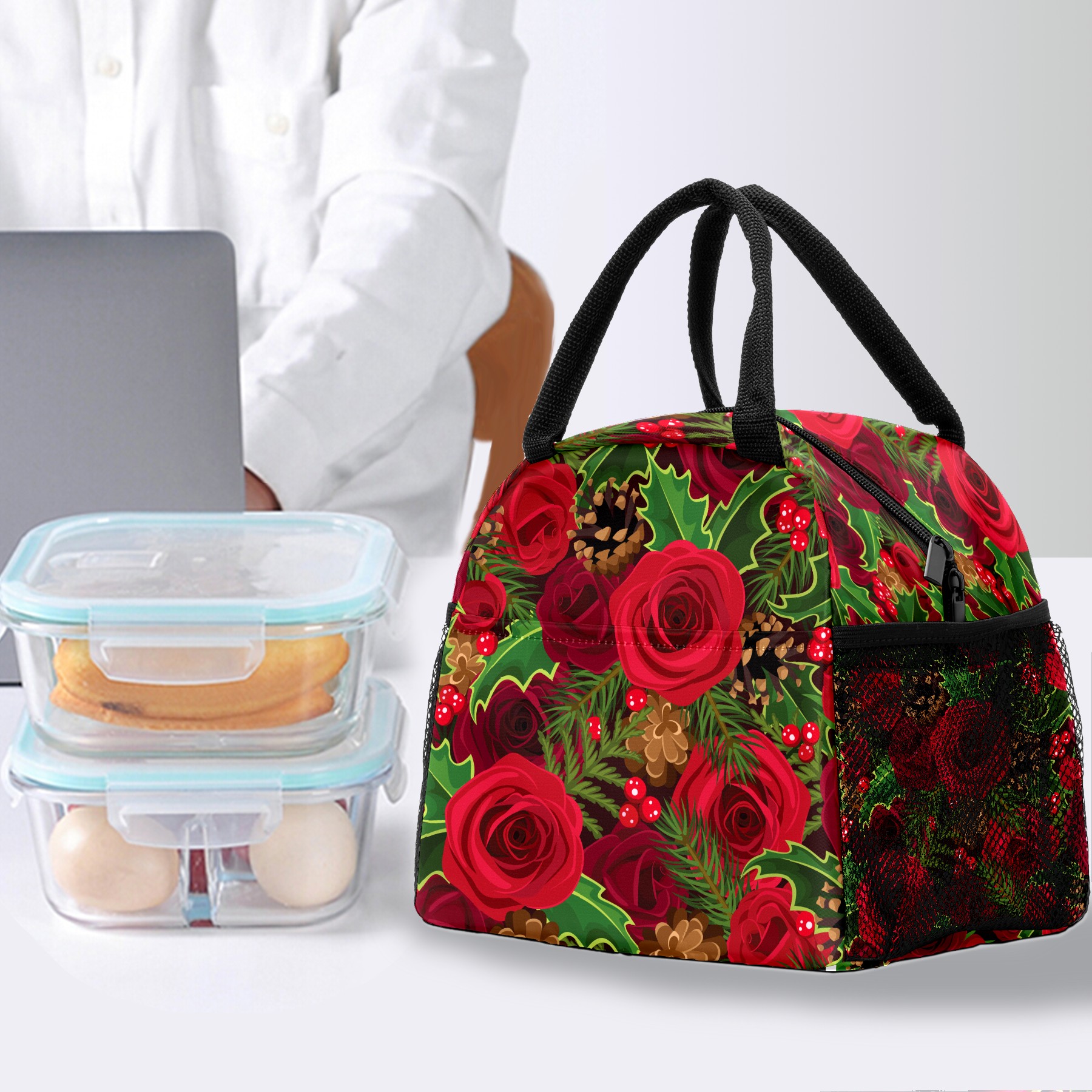 Lunch Bag for Women Men, Love Rose Flower Jungle Insulated Reusable Lunch Box Thermal Cooler Tote Bag for Work Picnic Hiking Travel Beach