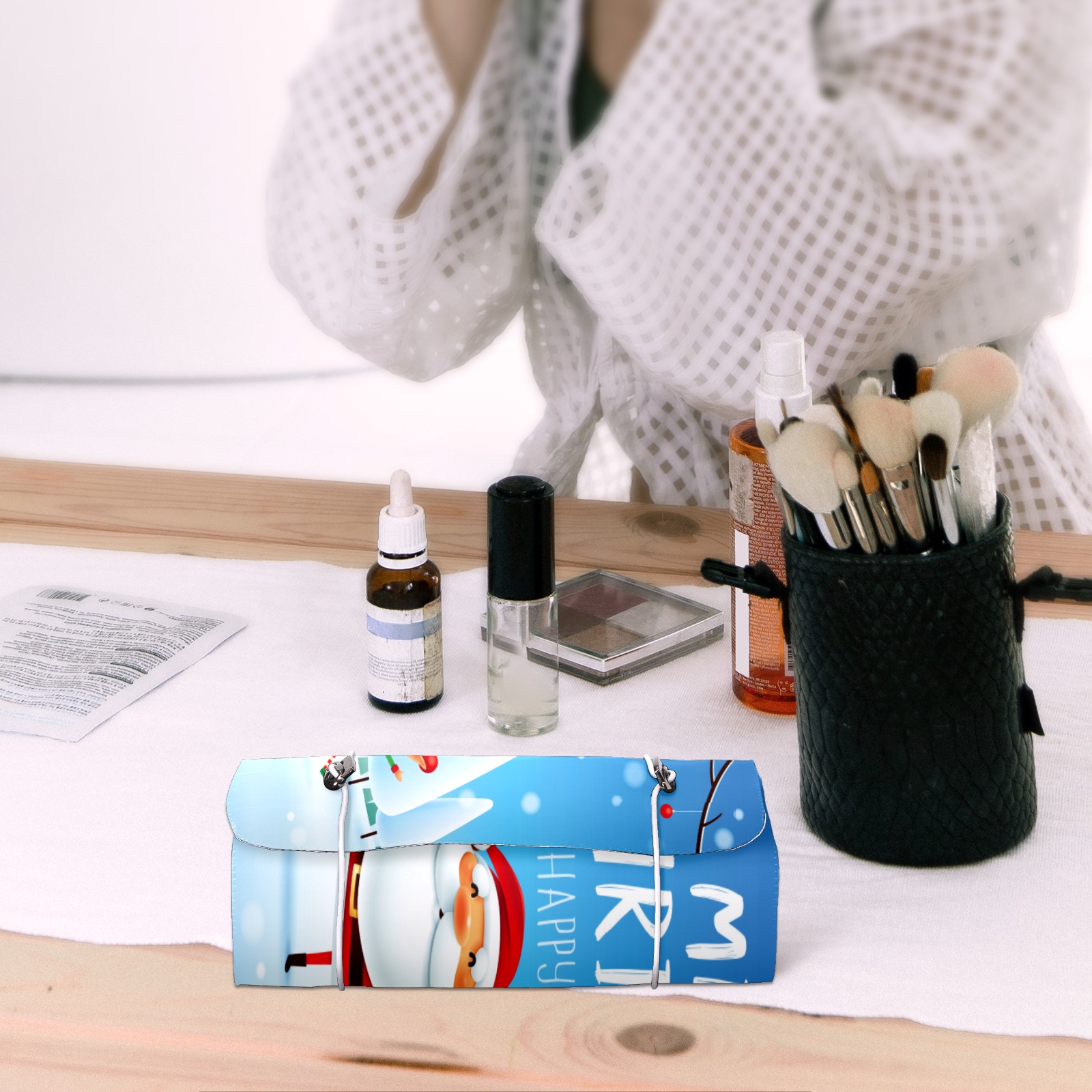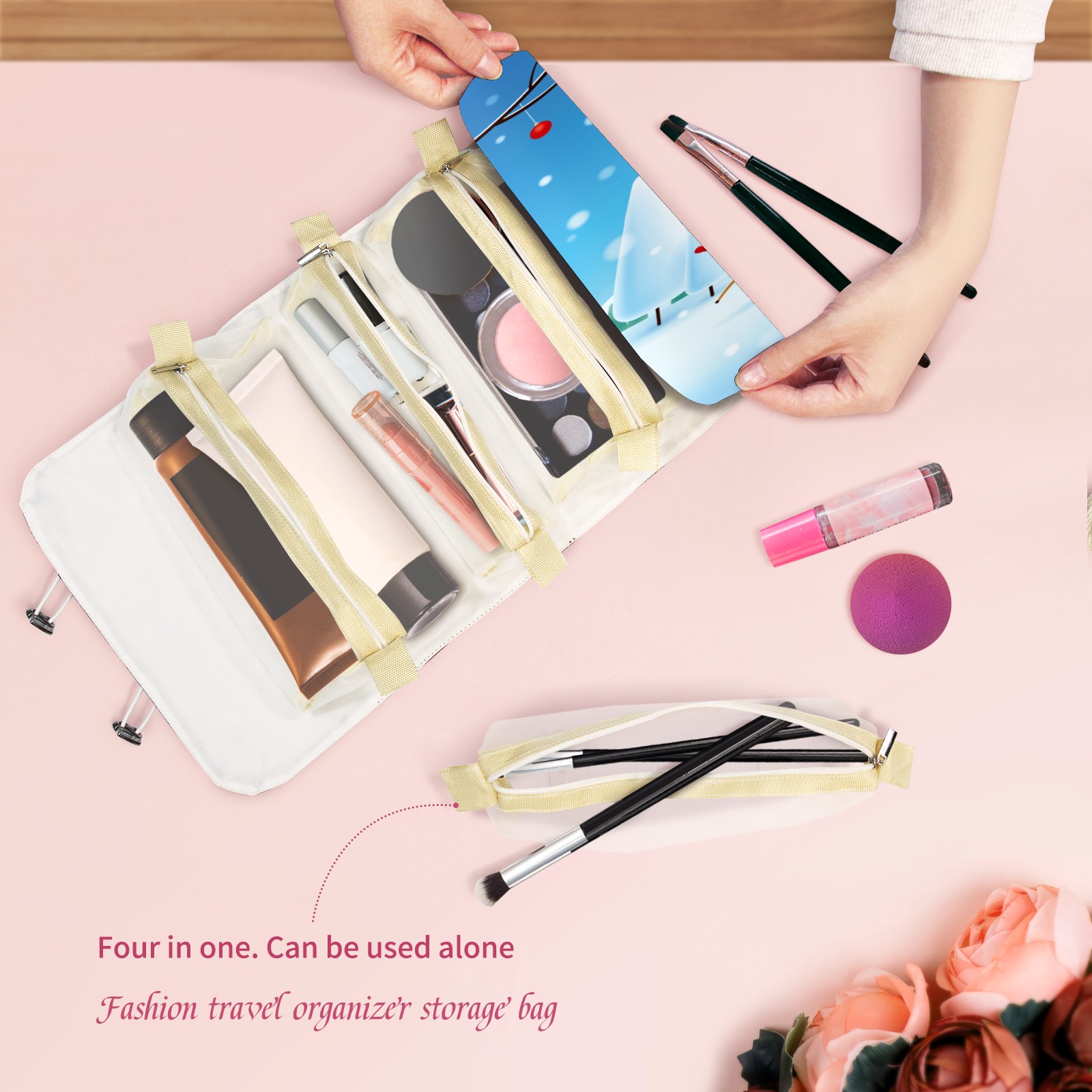 Makeup Bag Organizer Toiletry Bags for Traveling Travel Makeup Organizer Make Up Case Roll Up Toiletry Bag Makeup Bag Lovely Santa Snowman Travel Cosmetic Bag