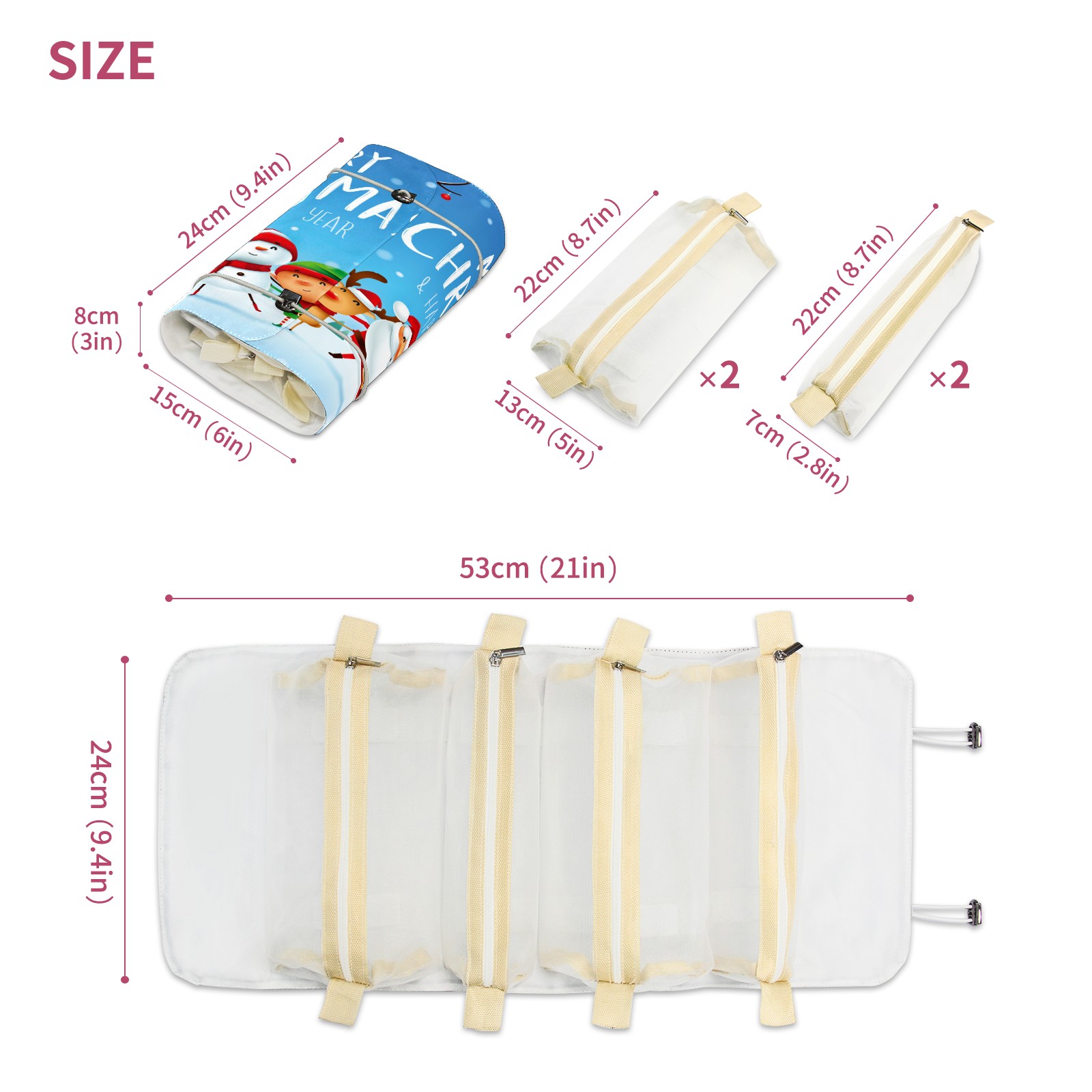 • <p> This is a nice and compact travel/ organizer bag. All the pouches are removable. This makes it very easy to use or pull out what you need in the moment, and not get stuck rummaging through a bag and not being able to find your items. It folds up nicely, and has 2 bungee straps that you can sinch tight to hold. It works great for traveling. </p> <p> </p> <p><b> Notes:&nbsp; </b></p> <p> 1.Due to the difference between different monitors,the picture may not reflect the actual color of the item. We guarantee the style is the same as shown in the pictures.&nbsp; </p> <p> 2.Due to the manual measurement and different measurement methods, please allow 1-3cm deviation.Thanks! </p>
