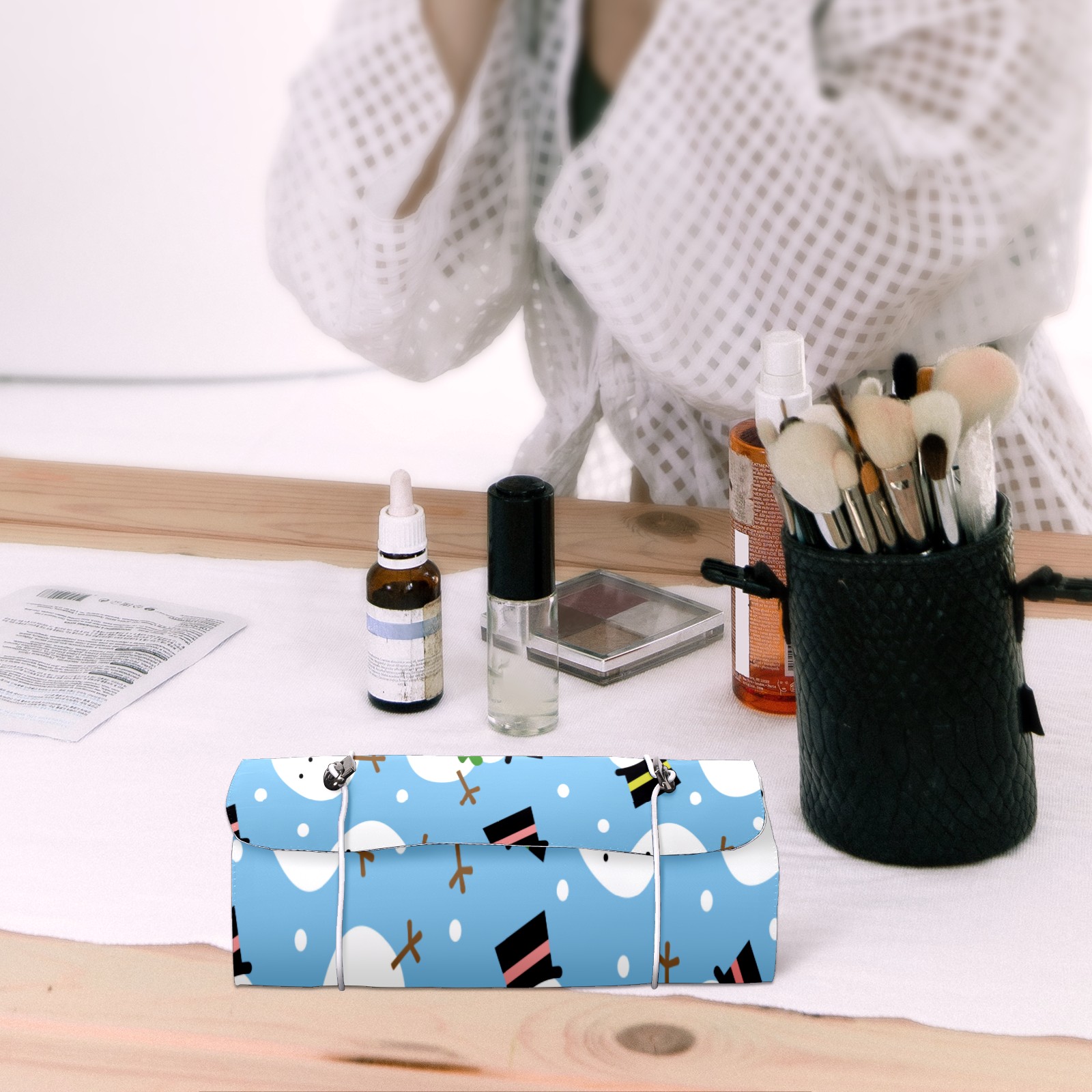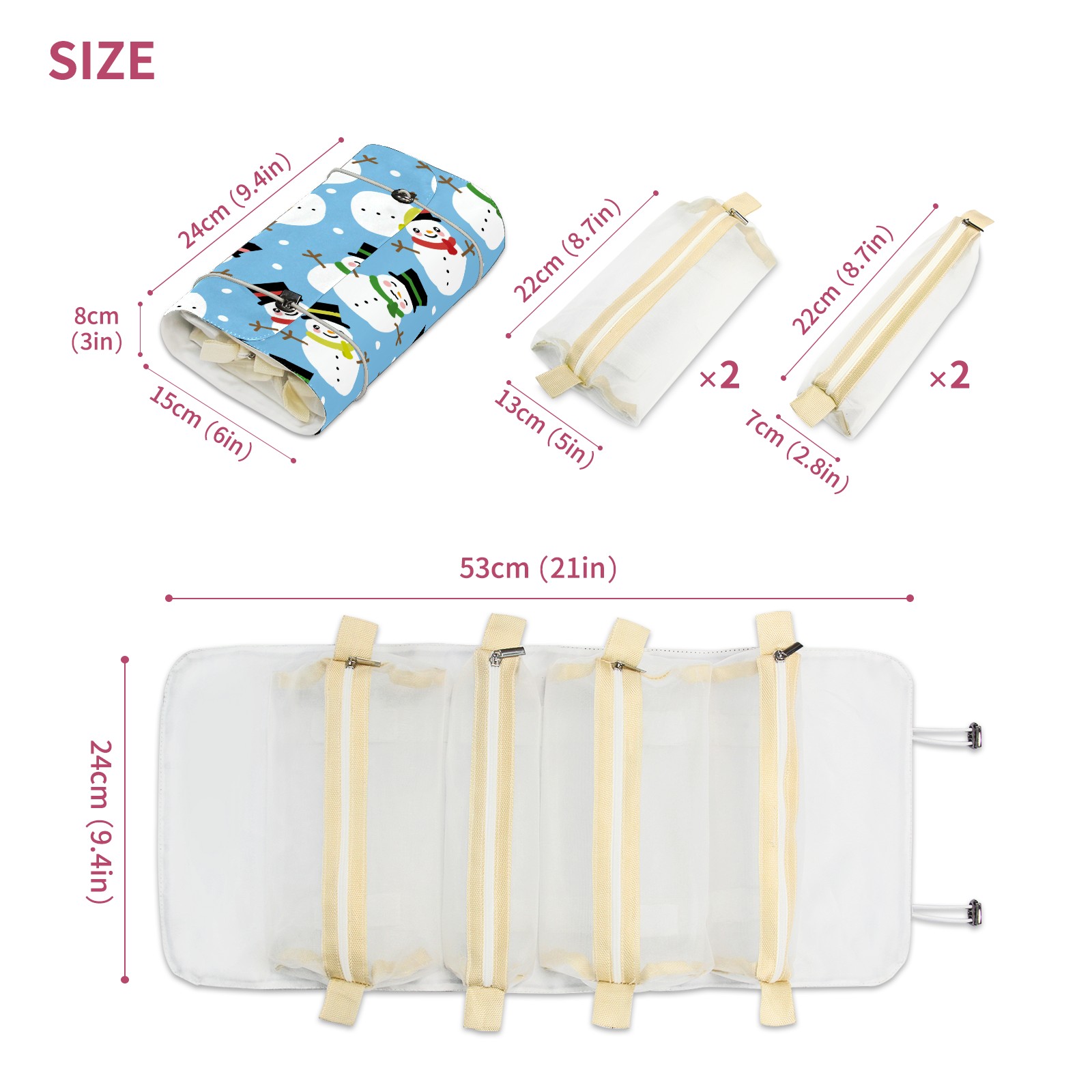 Makeup Bag Organizer Toiletry Bags for Traveling Travel Makeup Organizer Make Up Case Roll Up Toiletry Bag Makeup Bag Lovely Snowman Pattern Travel Cosmetic Bag