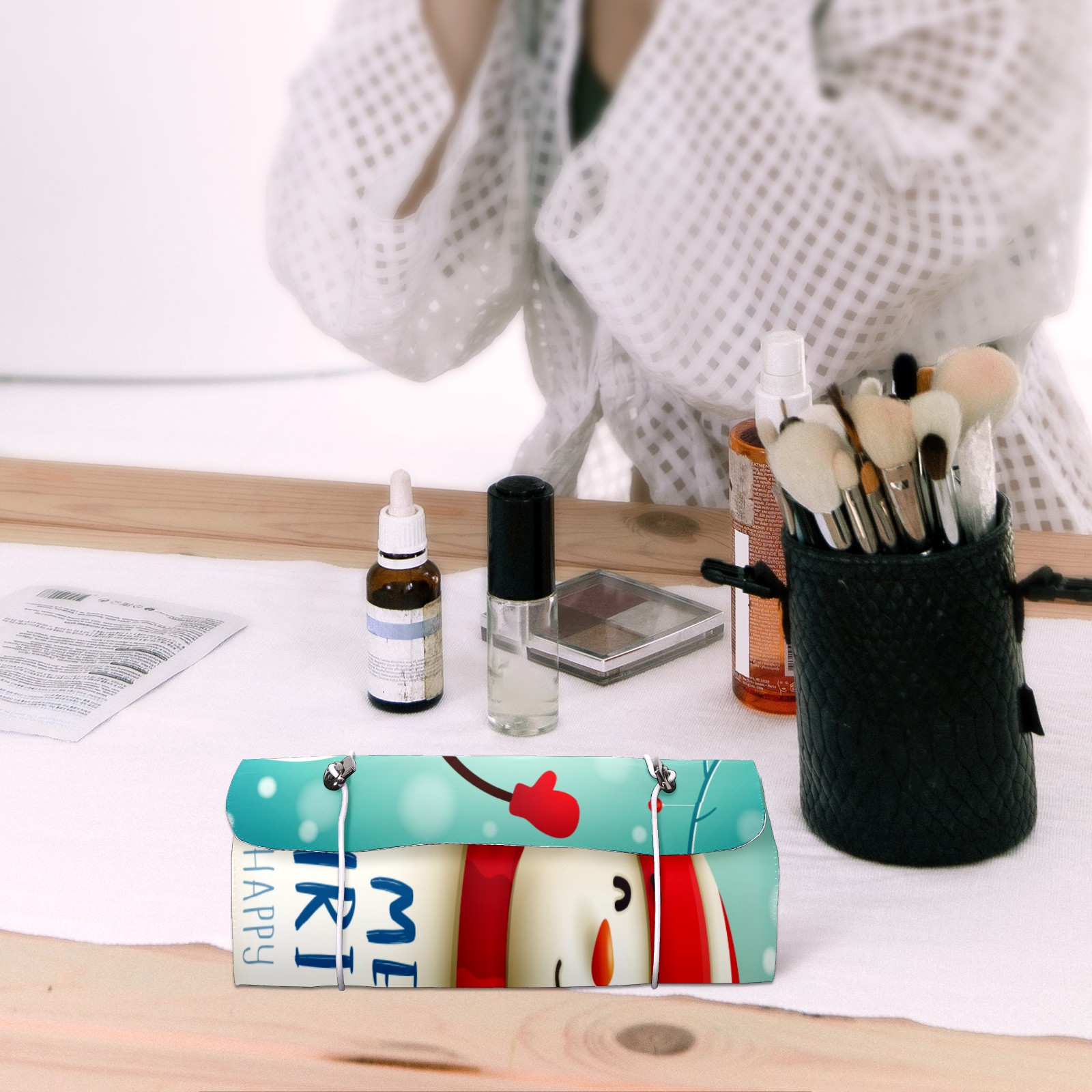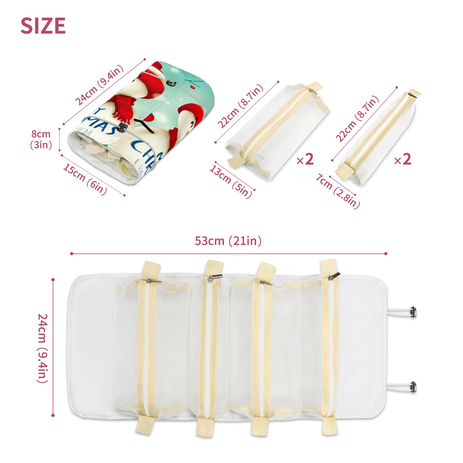Makeup Bag Organizer Toiletry Bags for Traveling Travel Makeup Organizer Make Up Case Roll Up Toiletry Bag Makeup Bag Lovely Merry Christmas Snowman Travel Cosmetic Bag