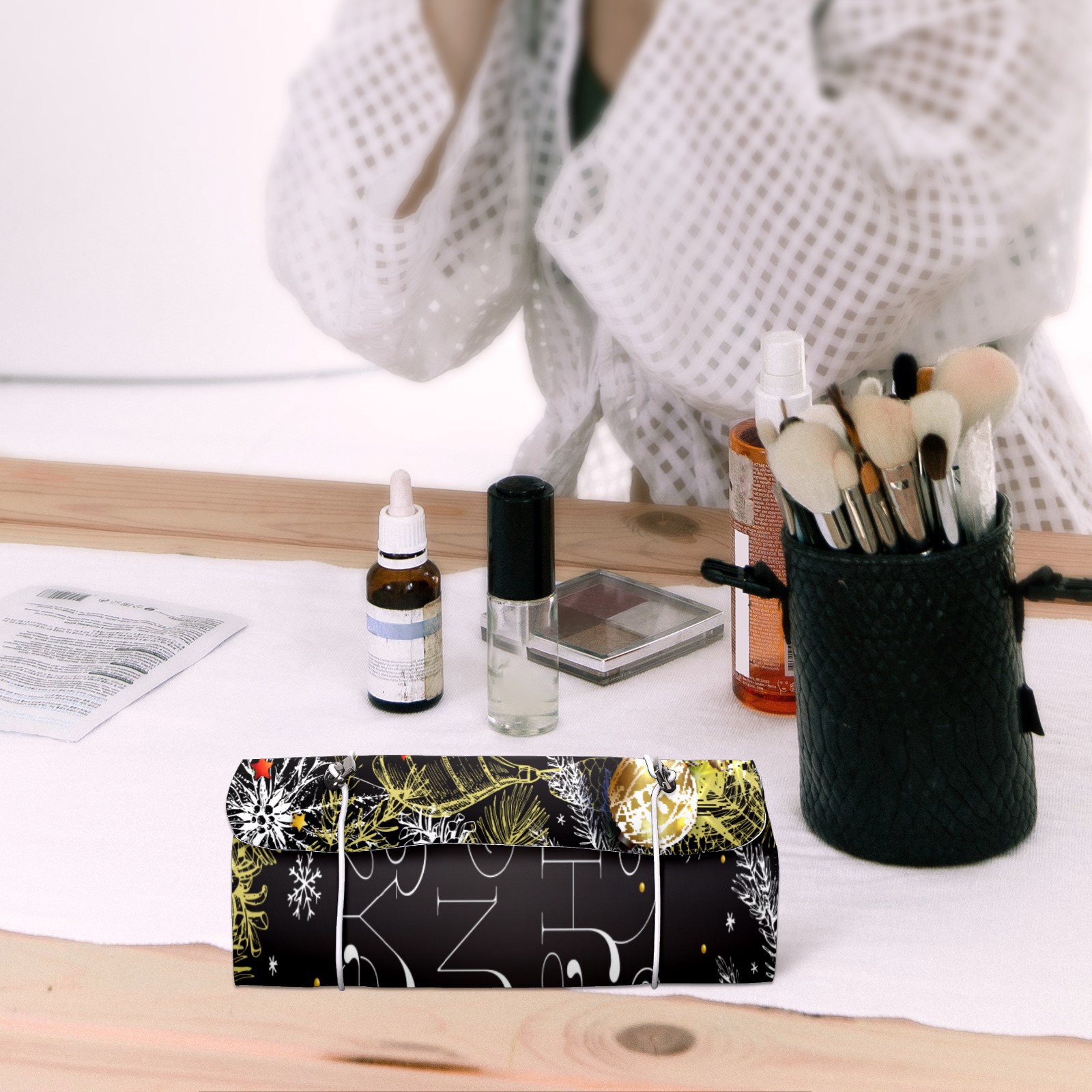 Makeup Bag Organizer Toiletry Bags for Traveling Travel Makeup Organizer Make Up Case Roll Up Toiletry Bag Makeup Bag Happy New Year On Blackboard Travel Cosmetic Bag