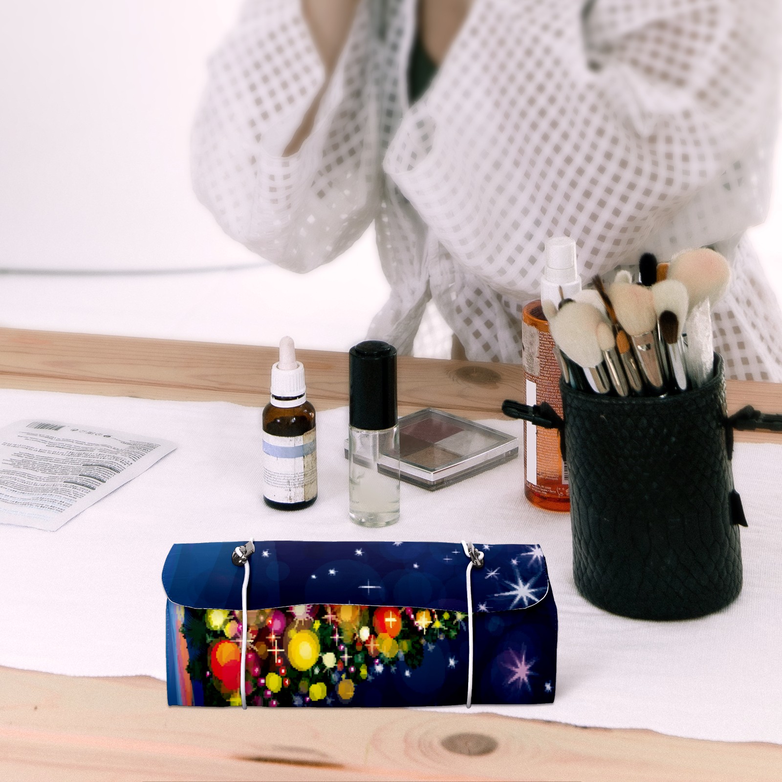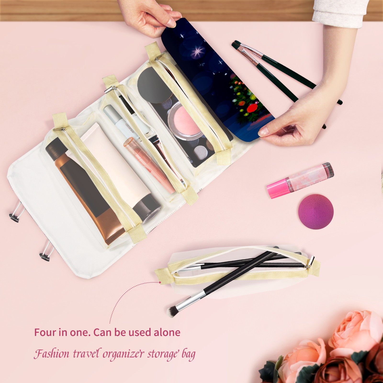 Makeup Bag Organizer Toiletry Bags for Traveling Travel Makeup Organizer Make Up Case Roll Up Toiletry Bag Makeup Bag Lighting Christmas Tree Travel Cosmetic Bag