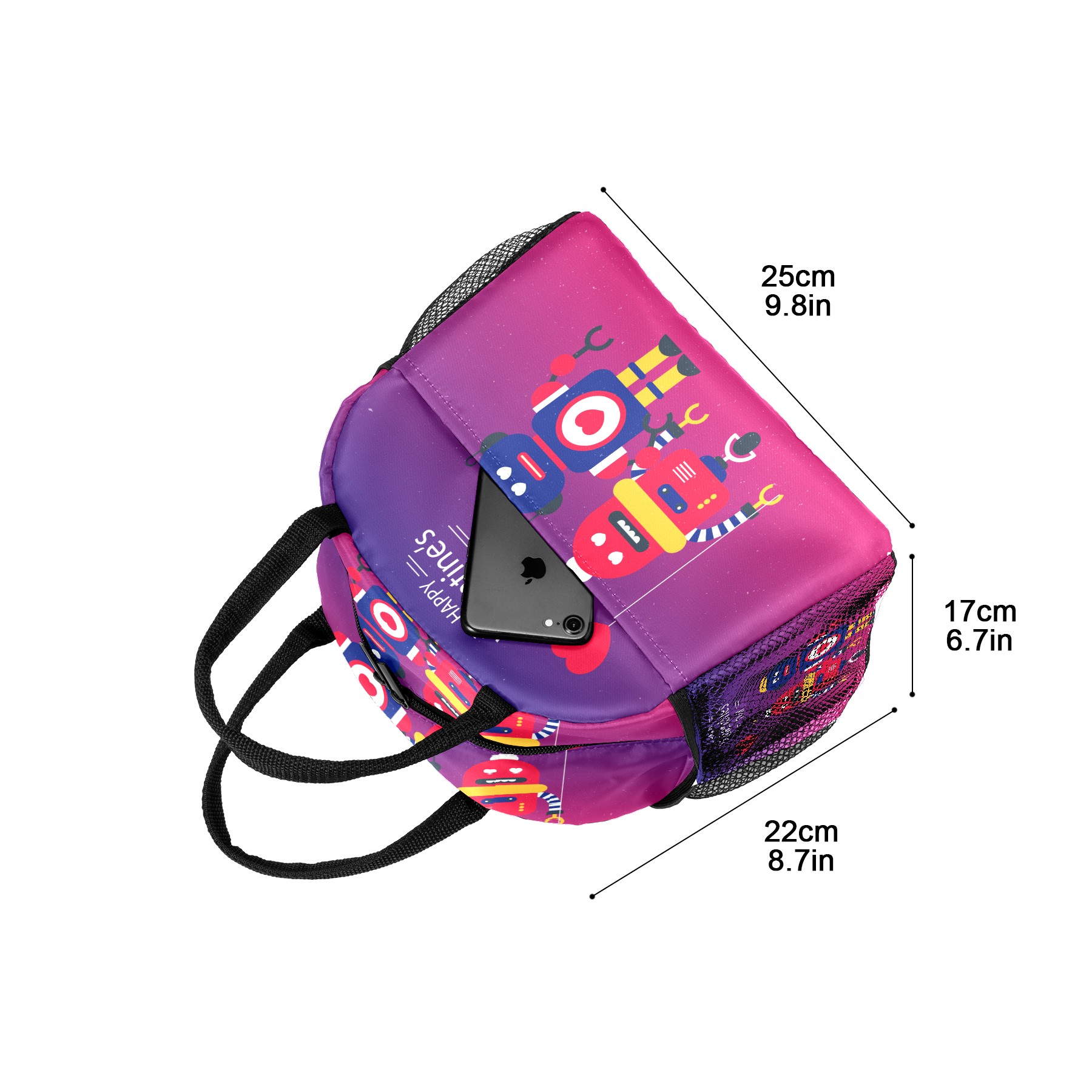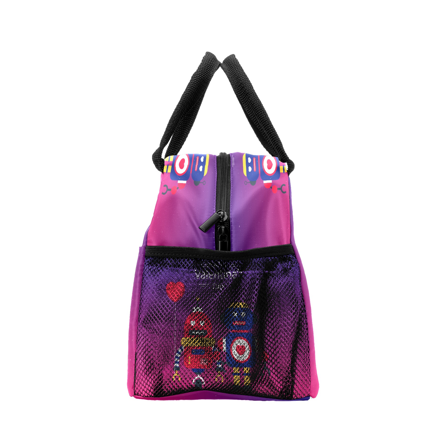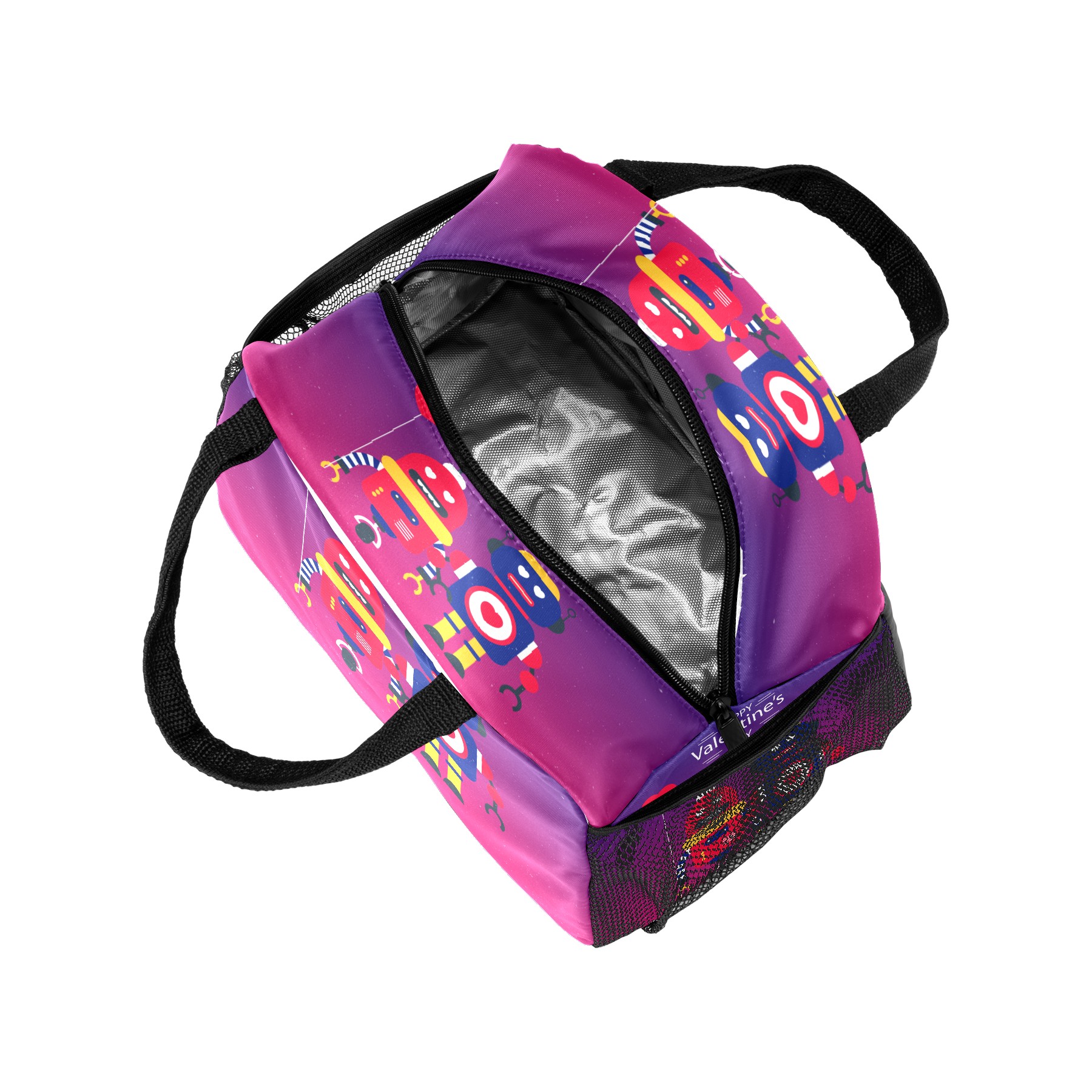 Lunch Bag for Women Men, Happy Valentine's Day Robot Love Insulated Reusable Lunch Box Thermal Cooler Tote Bag for Work Picnic Hiking Travel Beach