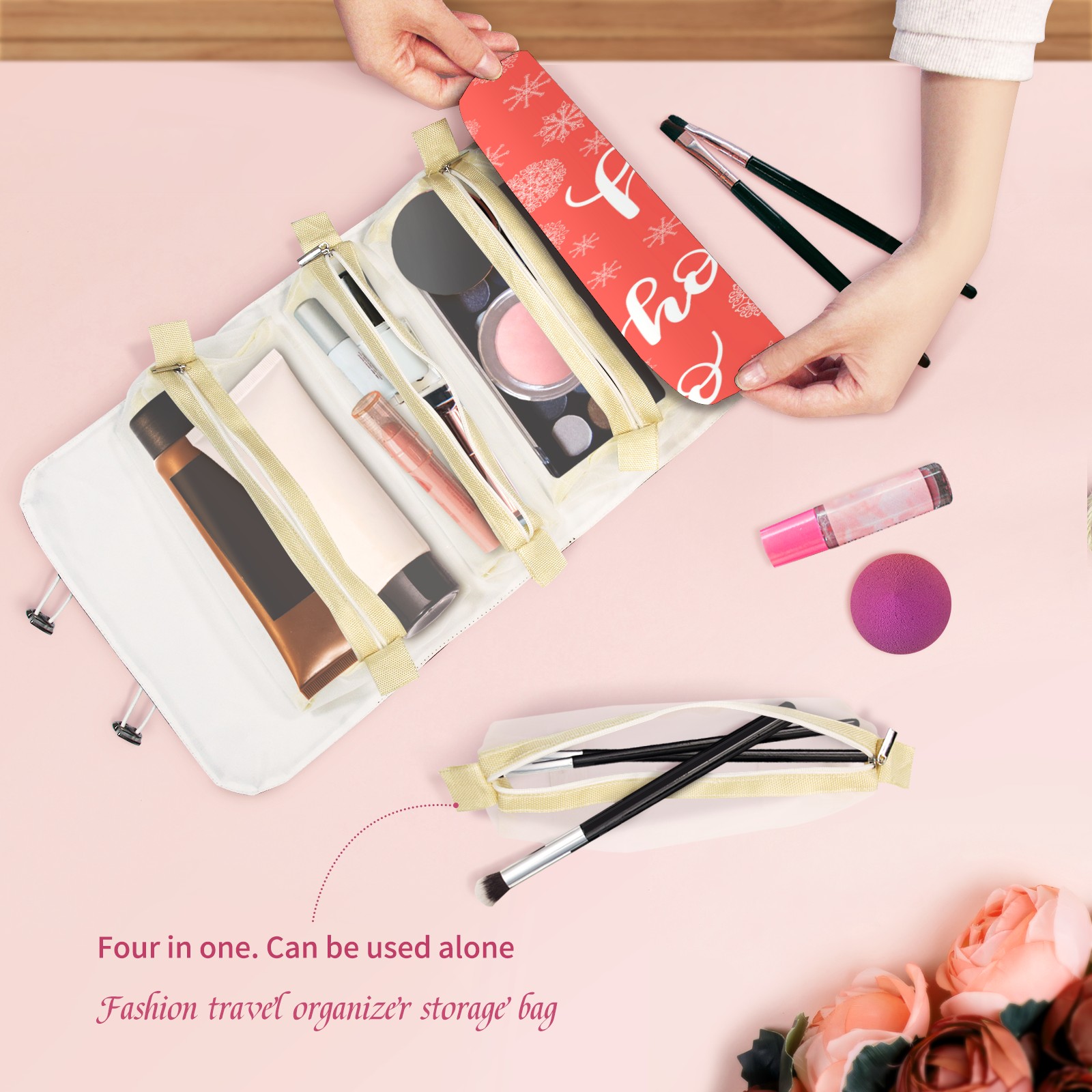 Makeup Bag Organizer Toiletry Bags for Traveling Travel Makeup Organizer Make Up Case Roll Up Toiletry Bag Makeup Bag Ho & Snowflake Travel Cosmetic Bag