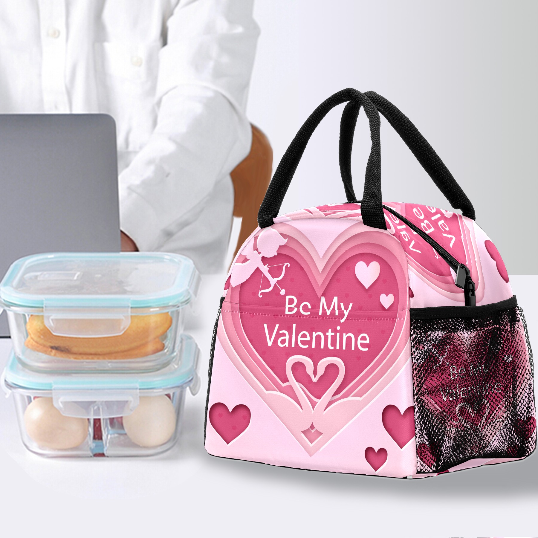 Lunch Bag for Women Men, Be My Valentine Angle Red Love Insulated Reusable Lunch Box Thermal Cooler Tote Bag for Work Picnic Hiking Travel Beach