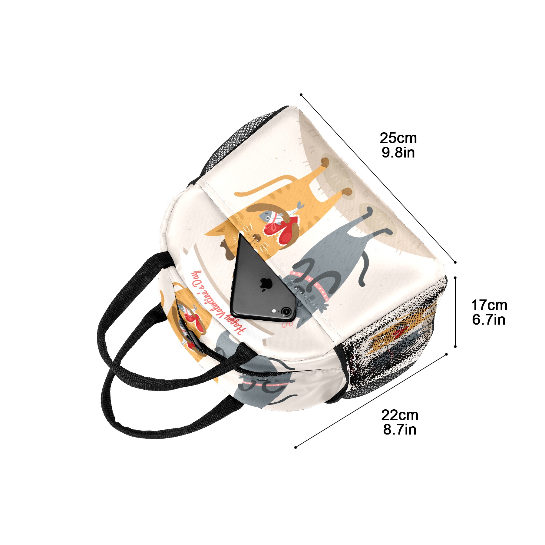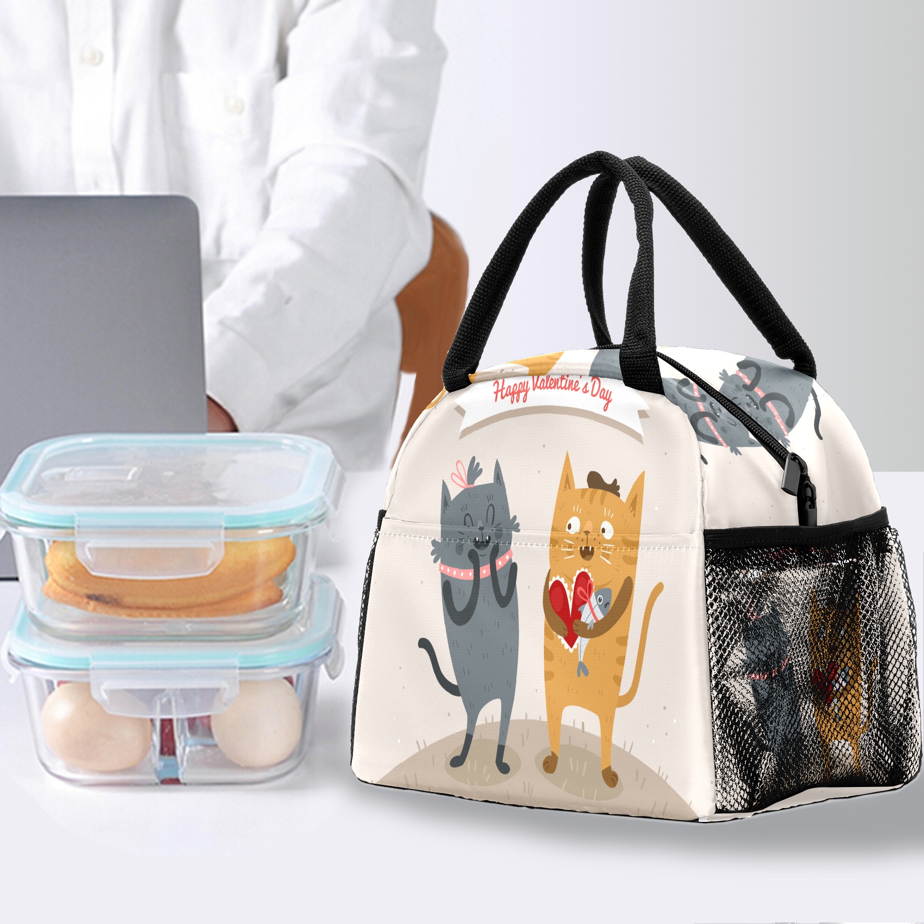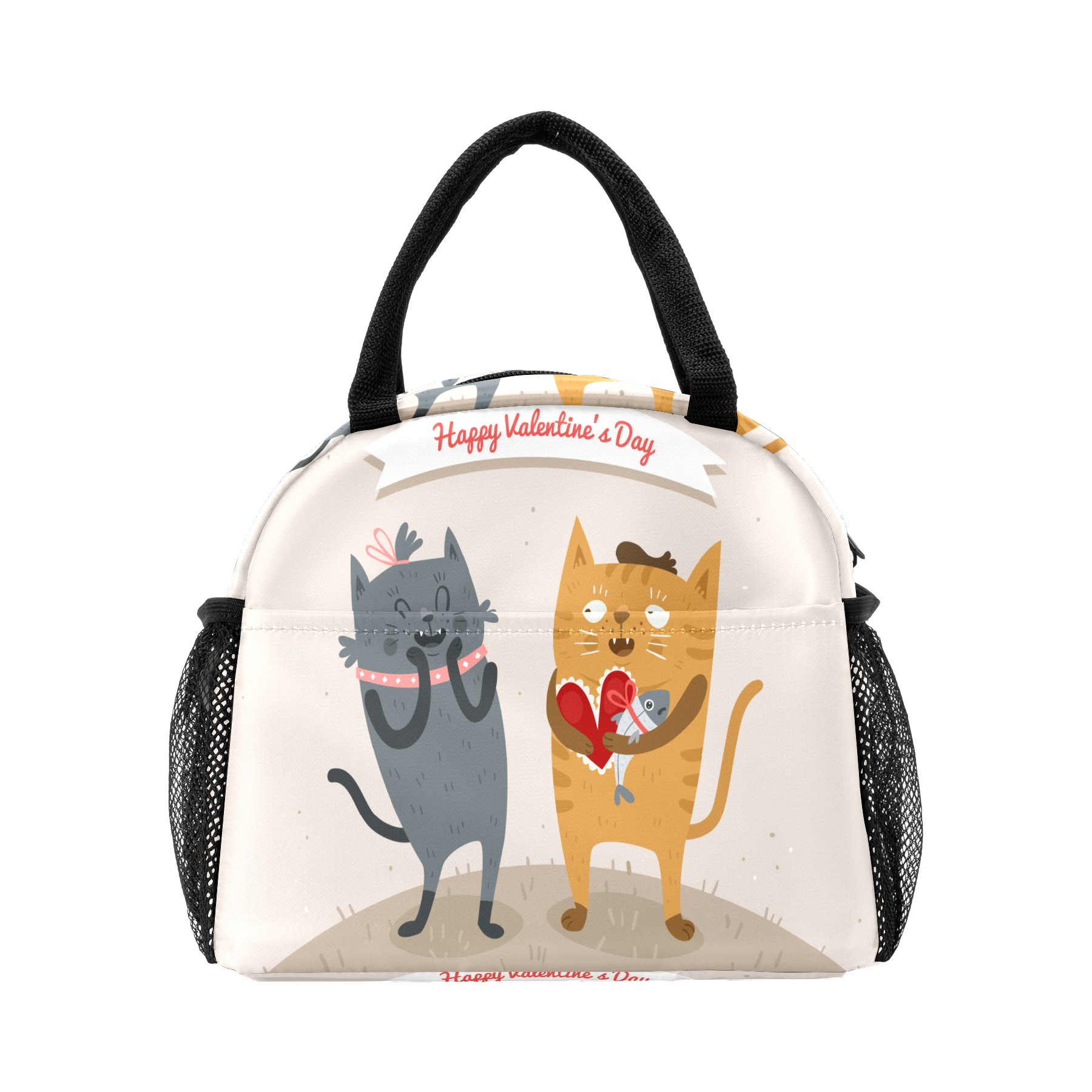 Lunch Bag for Women Men, Happy Valentine's Day Cat Lover Couple Insulated Reusable Lunch Box Thermal Cooler Tote Bag for Work Picnic Hiking Travel Beach