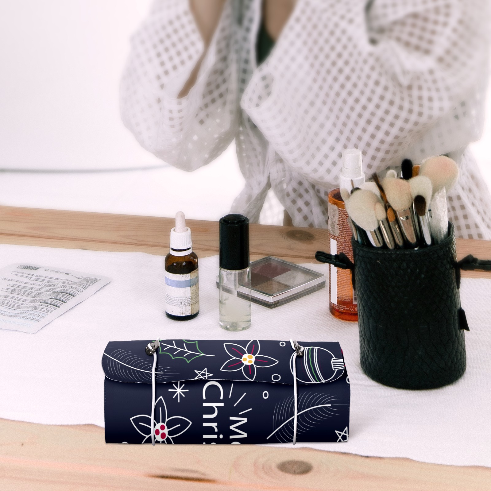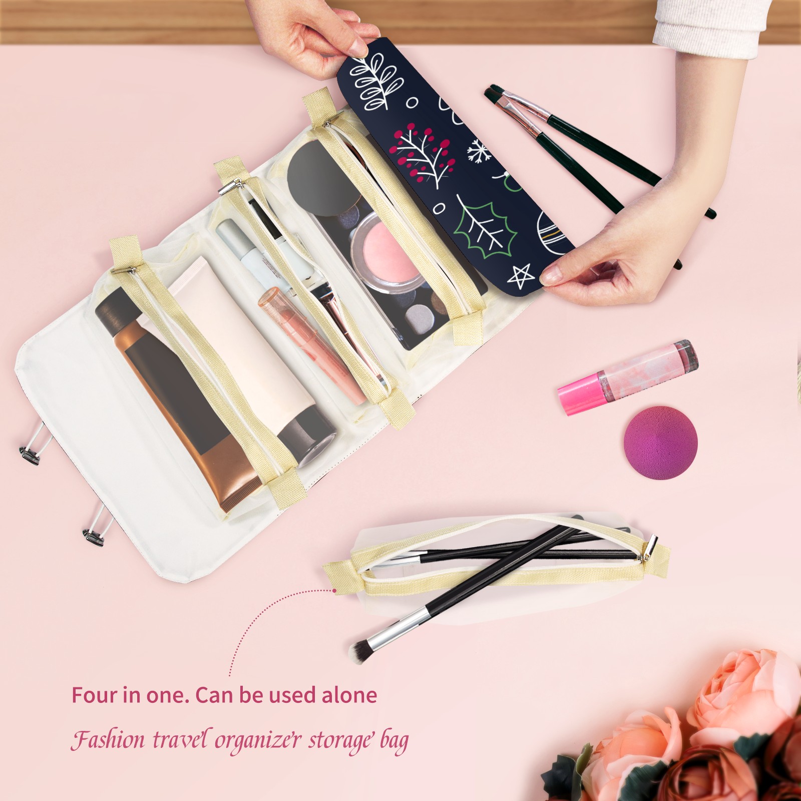 Makeup Bag Organizer Toiletry Bags for Traveling Travel Makeup Organizer Make Up Case Roll Up Toiletry Bag Makeup Bag Hand Drawn Christmas Elements Travel Cosmetic Bag
