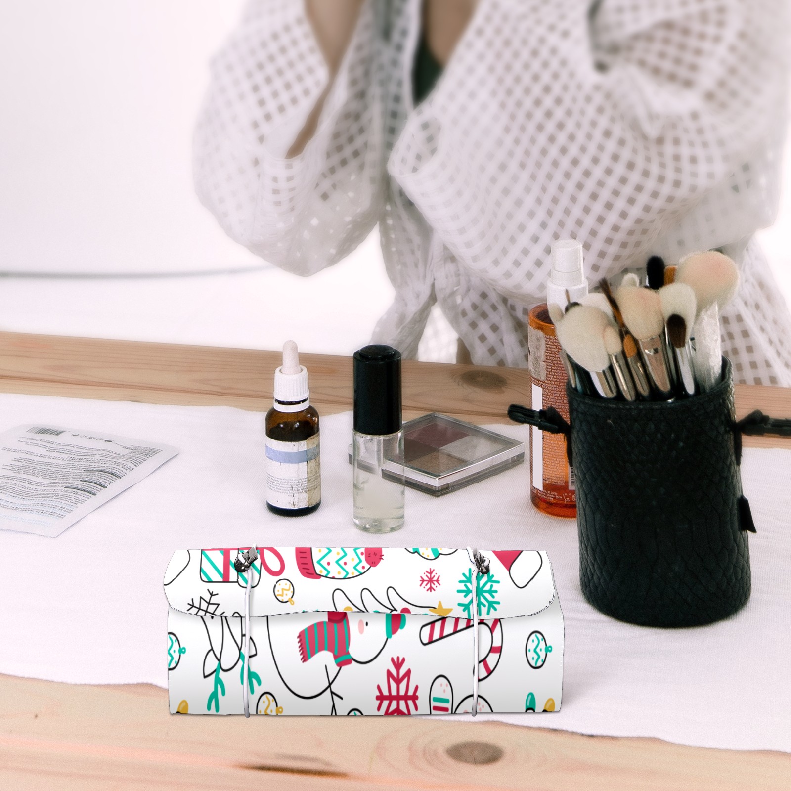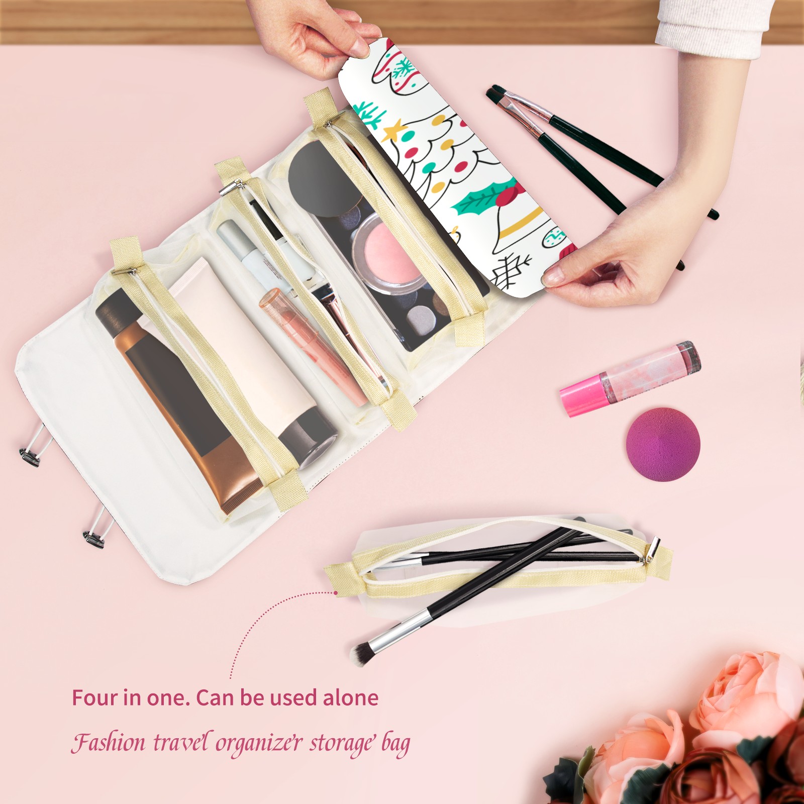 Makeup Bag Organizer Toiletry Bags for Traveling Travel Makeup Organizer Make Up Case Roll Up Toiletry Bag Makeup Bag Hand Drawn Christmas Cartoon-01 Travel Cosmetic Bag