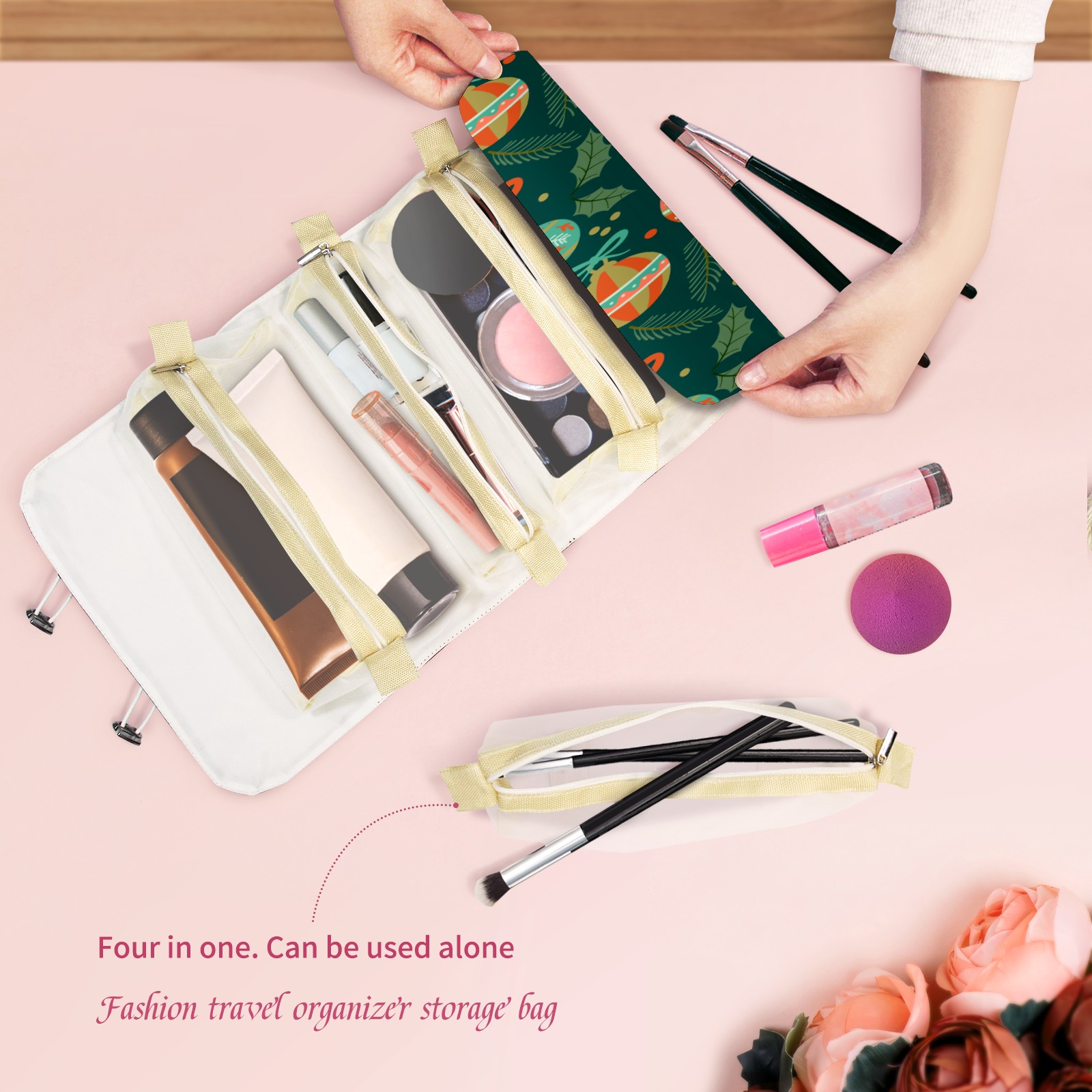 Makeup Bag Organizer Toiletry Bags for Traveling Travel Makeup Organizer Make Up Case Roll Up Toiletry Bag Makeup Bag Green Ornaments Travel Cosmetic Bag