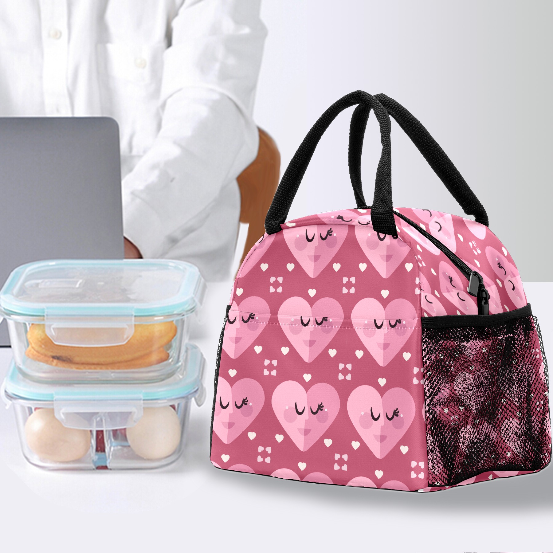 Lunch Bag for Women Men, Funny Cute Cartoon Smile Heart Love Insulated Reusable Lunch Box Thermal Cooler Tote Bag for Work Picnic Hiking Travel Beach