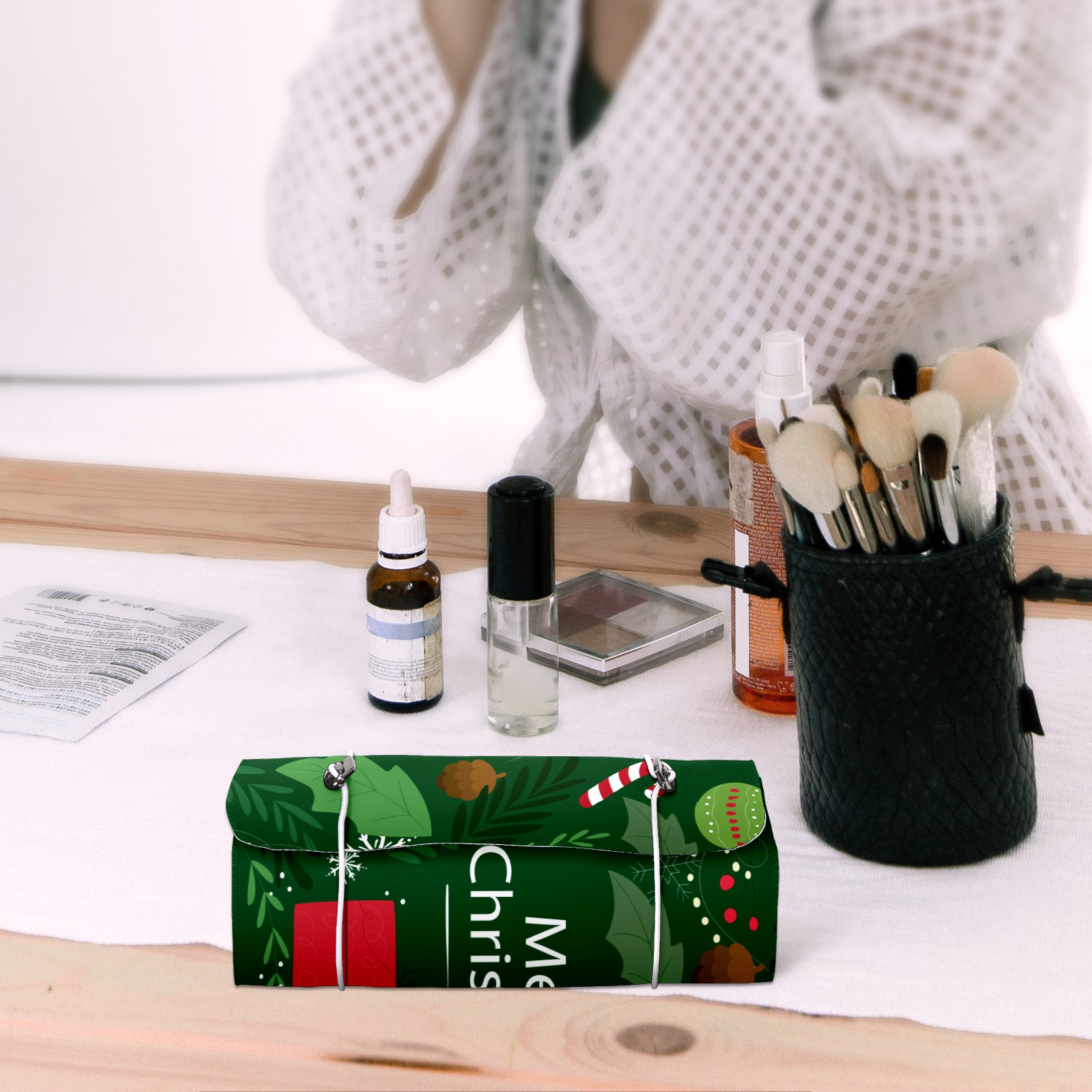Makeup Bag Organizer Toiletry Bags for Traveling Travel Makeup Organizer Make Up Case Roll Up Toiletry Bag Makeup Bag Green Merry Christmas-01 Travel Cosmetic Bag