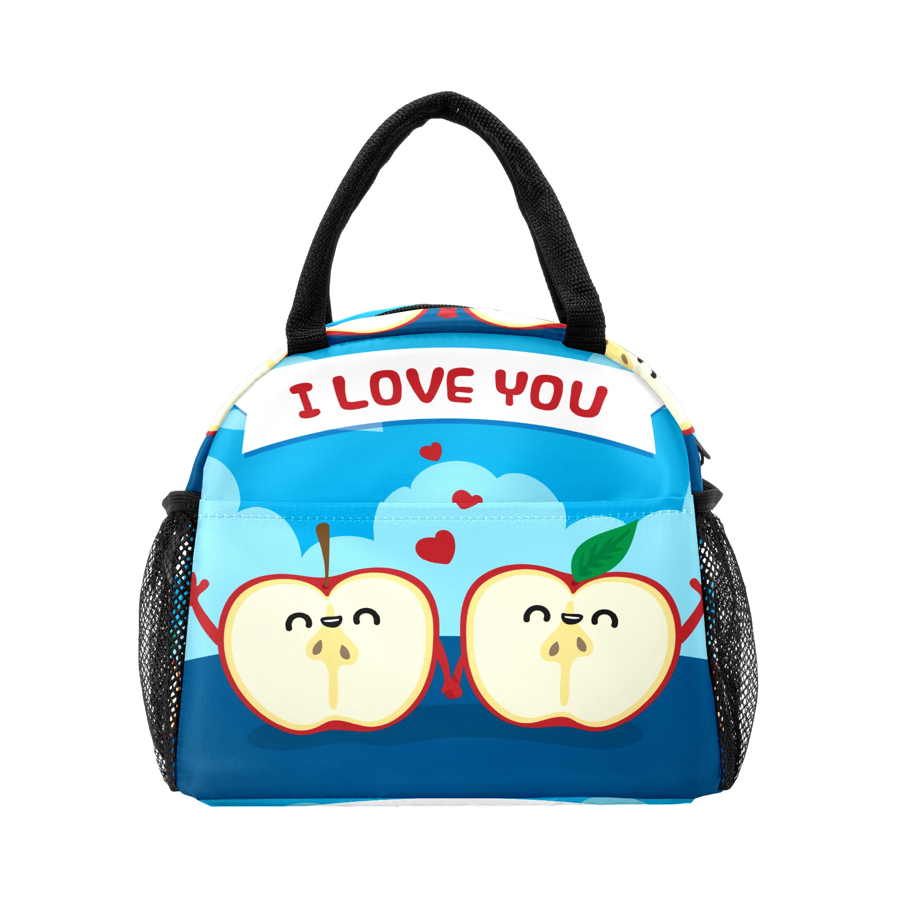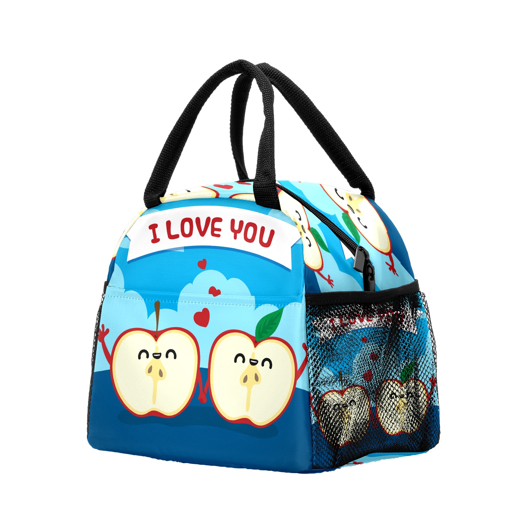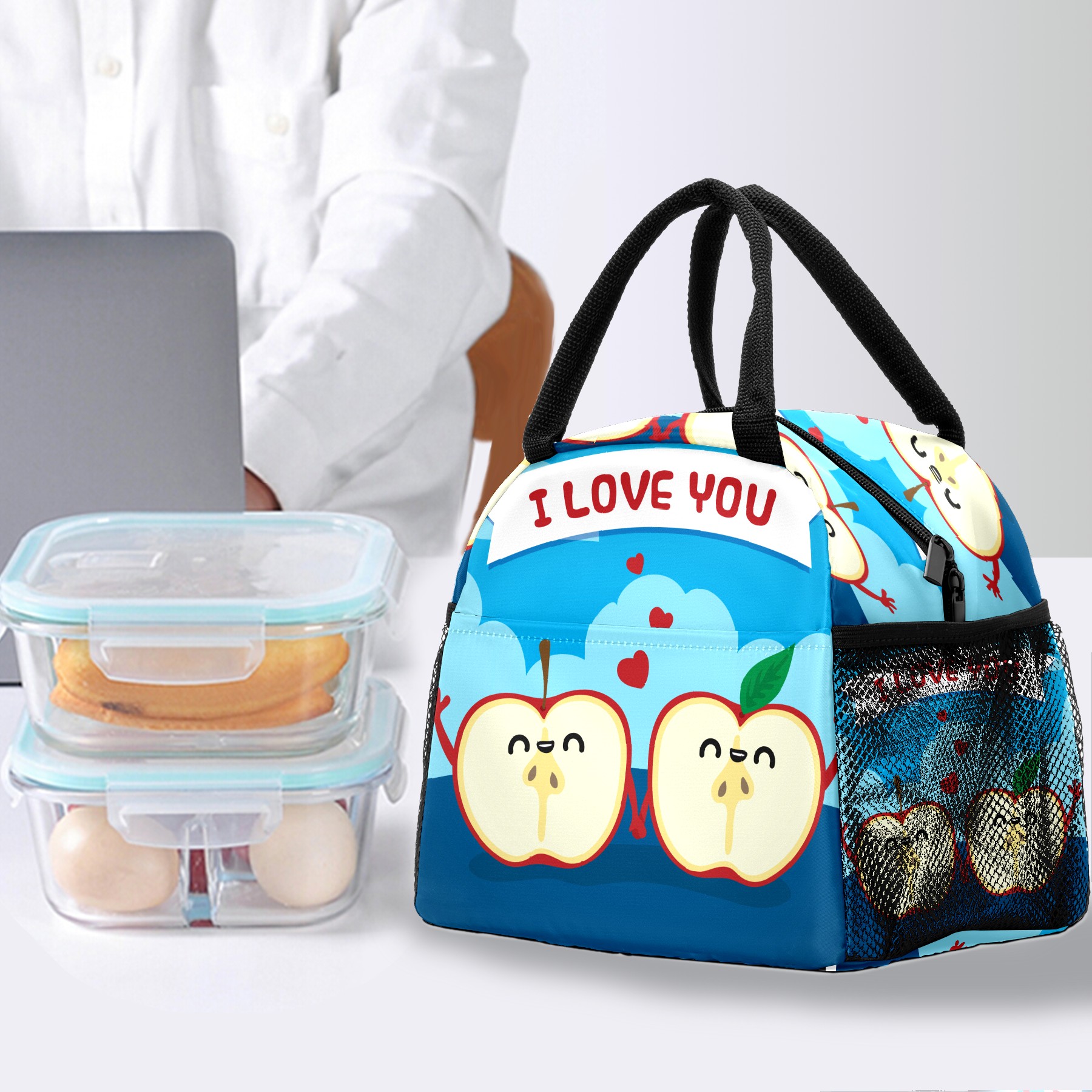 Lunch Bag for Women Men, Funny Valentine's Day Apple I Love You Insulated Reusable Lunch Box Thermal Cooler Tote Bag for Work Picnic Hiking Travel Beach