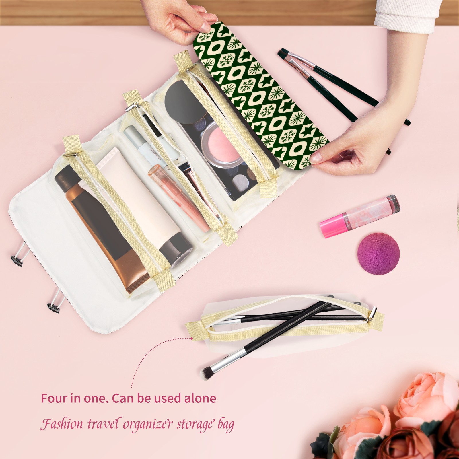 Makeup Bag Organizer Toiletry Bags for Traveling Travel Makeup Organizer Make Up Case Roll Up Toiletry Bag Makeup Bag Green Christmas Pattern-01 Travel Cosmetic Bag