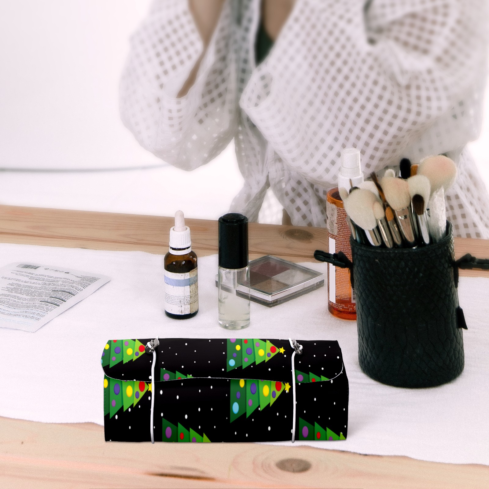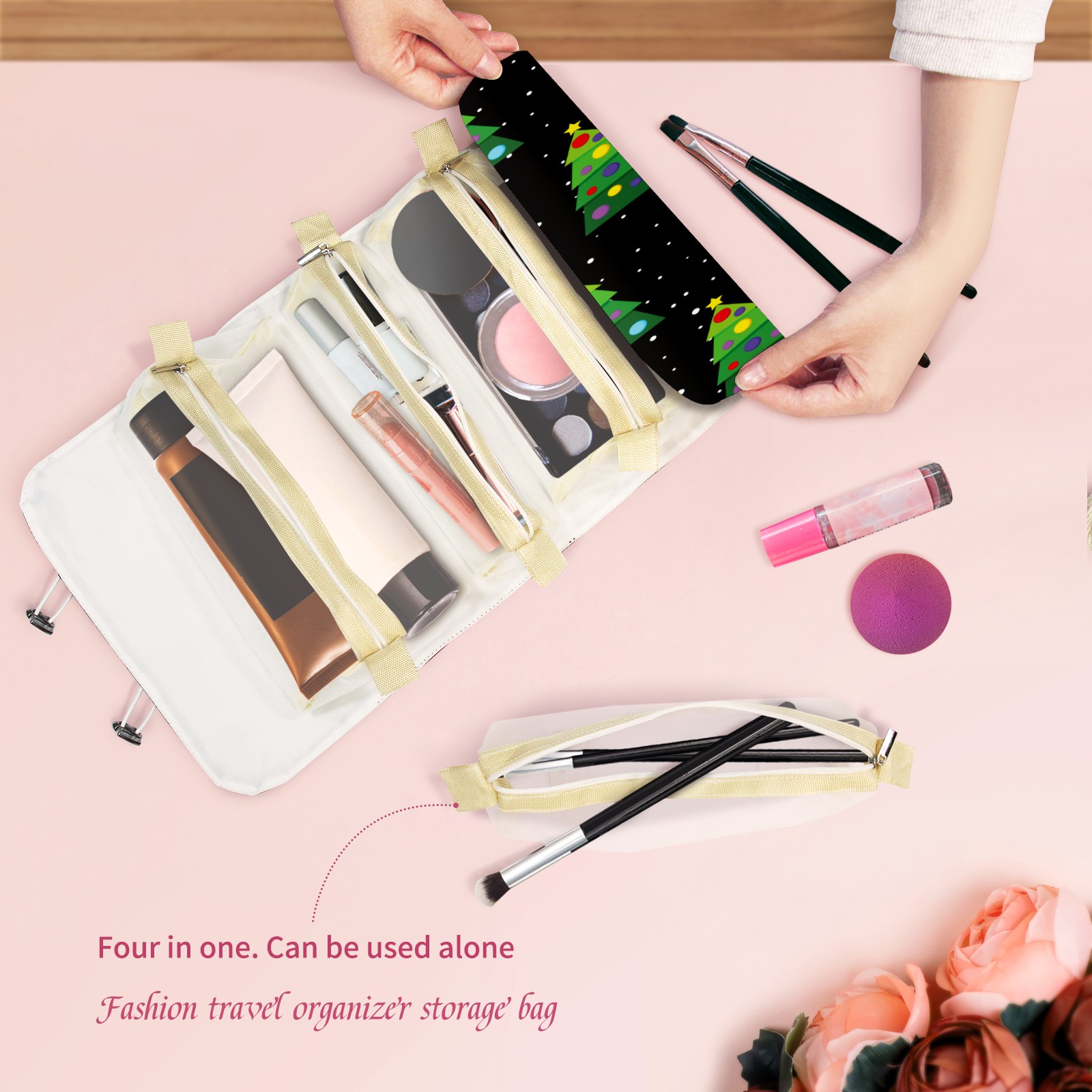 Makeup Bag Organizer Toiletry Bags for Traveling Travel Makeup Organizer Make Up Case Roll Up Toiletry Bag Makeup Bag Green Christmas Trees Travel Cosmetic Bag