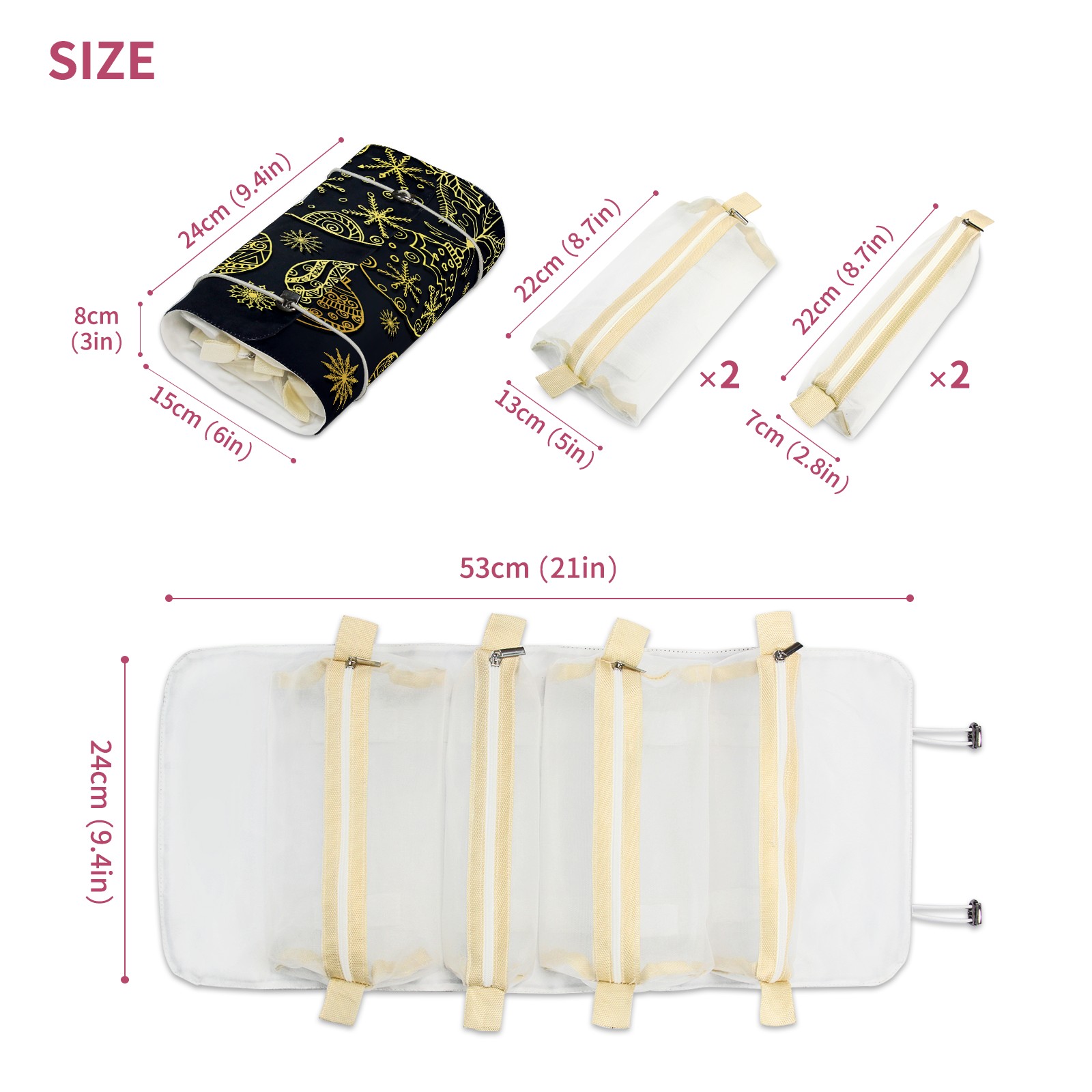 Makeup Bag Organizer Toiletry Bags for Traveling Travel Makeup Organizer Make Up Case Roll Up Toiletry Bag Makeup Bag Golden Ornaments Travel Cosmetic Bag