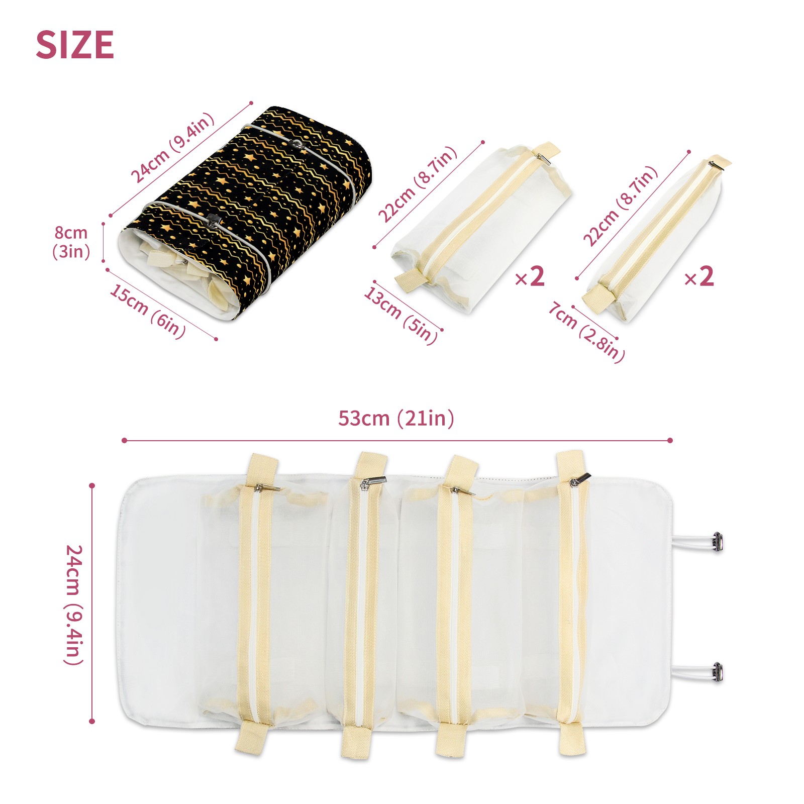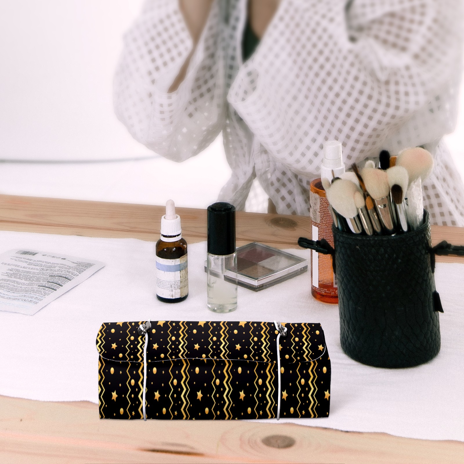 Makeup Bag Organizer Toiletry Bags for Traveling Travel Makeup Organizer Make Up Case Roll Up Toiletry Bag Makeup Bag Golden Stars On Black-01 Travel Cosmetic Bag