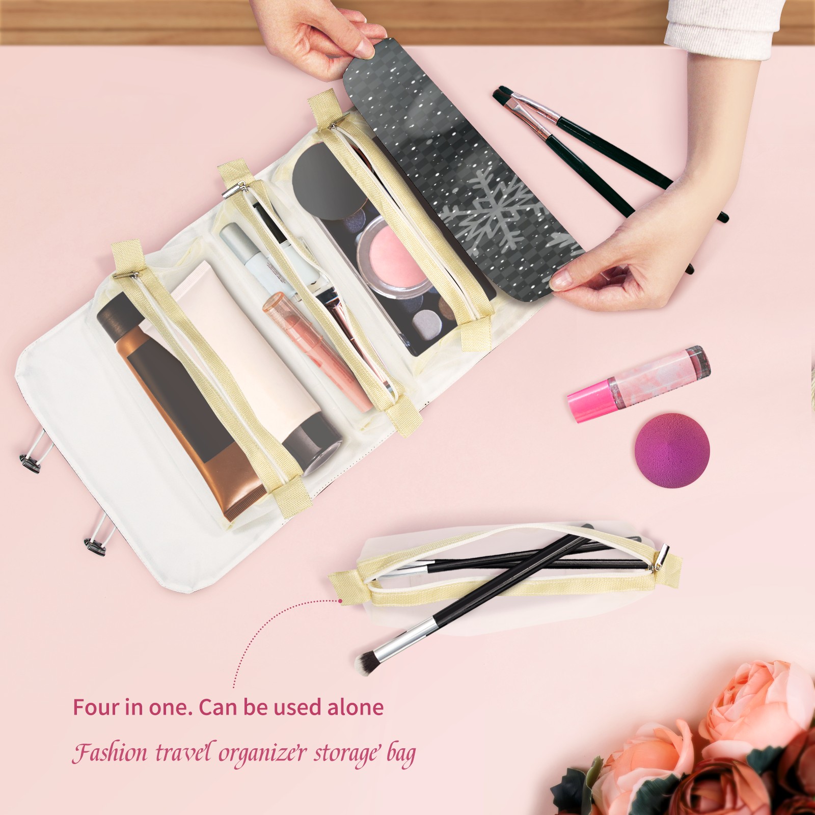 Makeup Bag Organizer Toiletry Bags for Traveling Travel Makeup Organizer Make Up Case Roll Up Toiletry Bag Makeup Bag Gray SnowflakeS Travel Cosmetic Bag