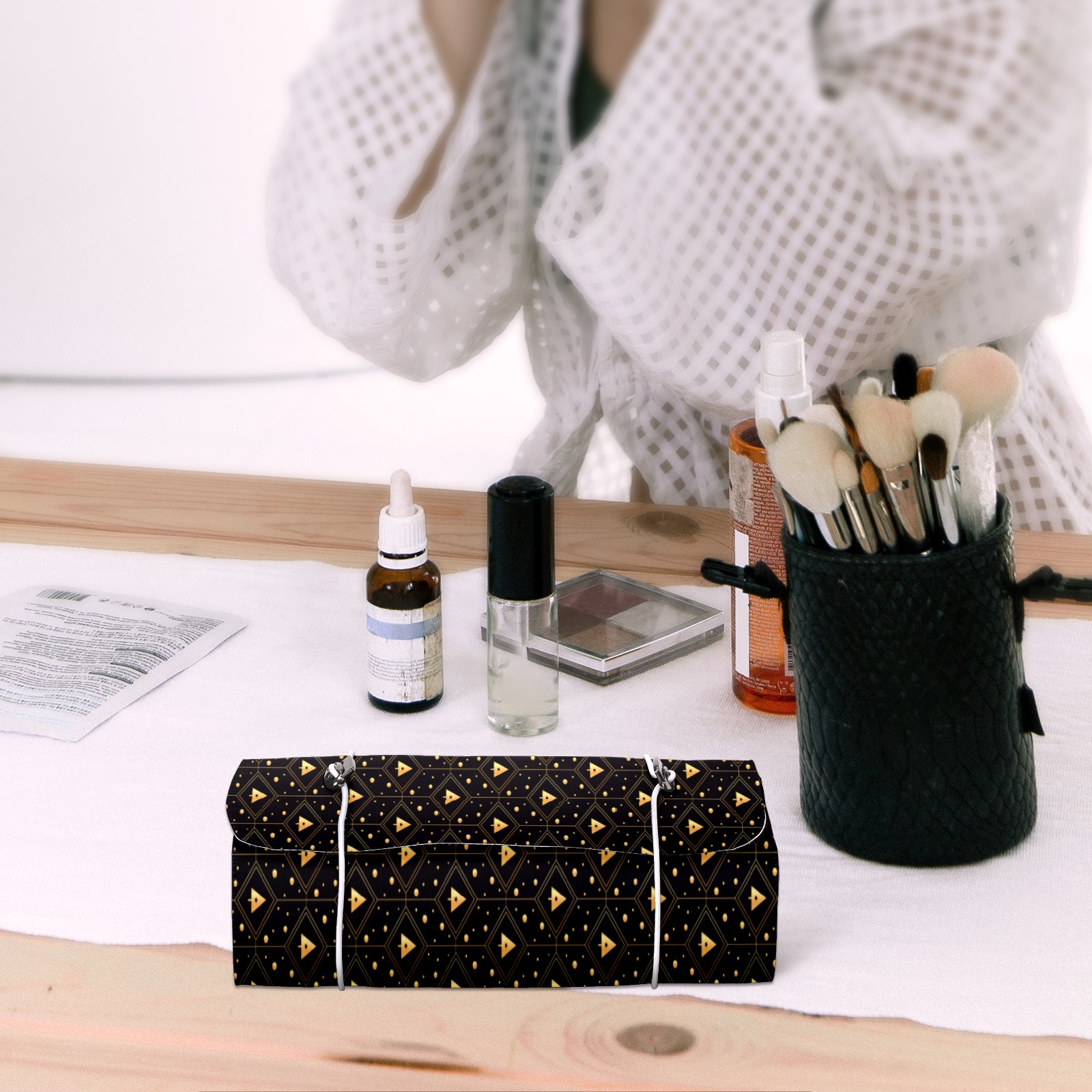 Makeup Bag Organizer Toiletry Bags for Traveling Travel Makeup Organizer Make Up Case Roll Up Toiletry Bag Makeup Bag Golden Christmas Tree In Black-01 Travel Cosmetic Bag