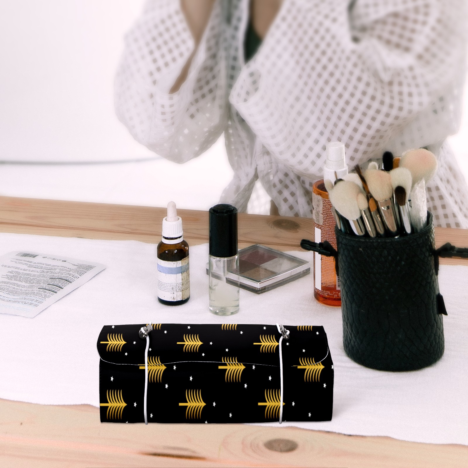 Makeup Bag Organizer Toiletry Bags for Traveling Travel Makeup Organizer Make Up Case Roll Up Toiletry Bag Makeup Bag Golden Christmas Tree Pattern-01 Travel Cosmetic Bag