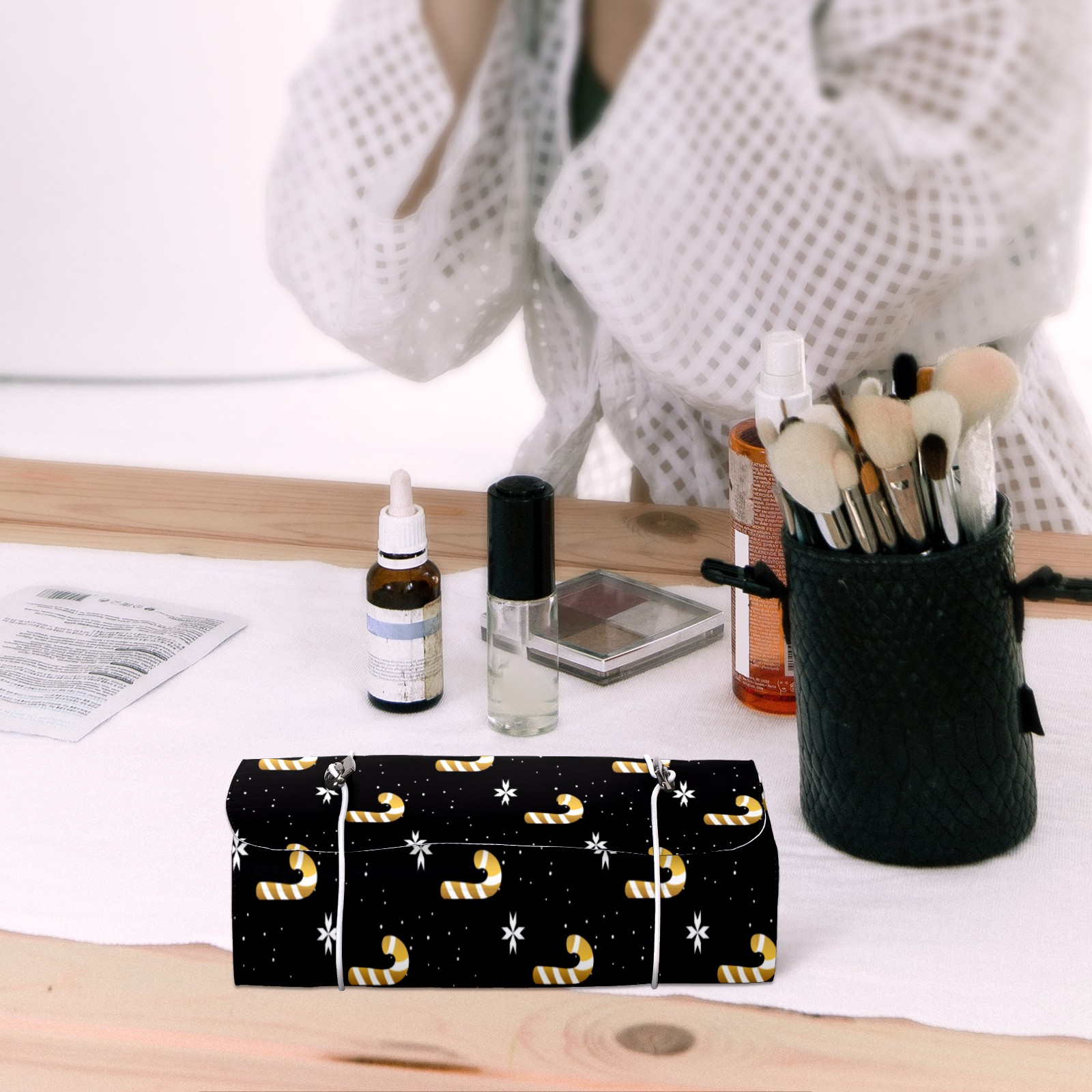 Makeup Bag Organizer Toiletry Bags for Traveling Travel Makeup Organizer Make Up Case Roll Up Toiletry Bag Makeup Bag Golden Candy Cane-01 Travel Cosmetic Bag