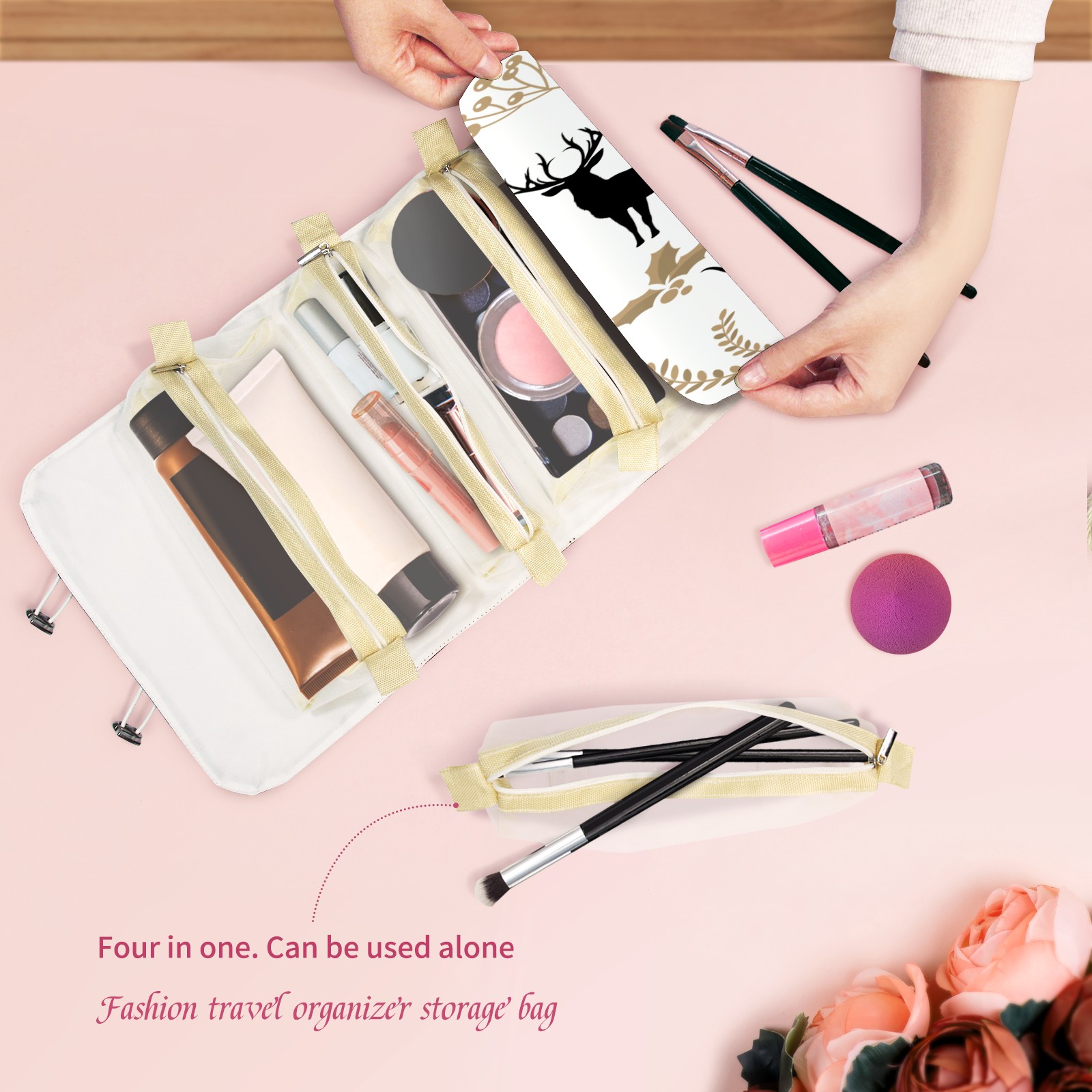 Makeup Bag Organizer Toiletry Bags for Traveling Travel Makeup Organizer Make Up Case Roll Up Toiletry Bag Makeup Bag Floral With Black Raindeer-01 Travel Cosmetic Bag