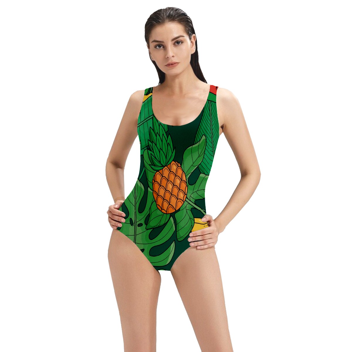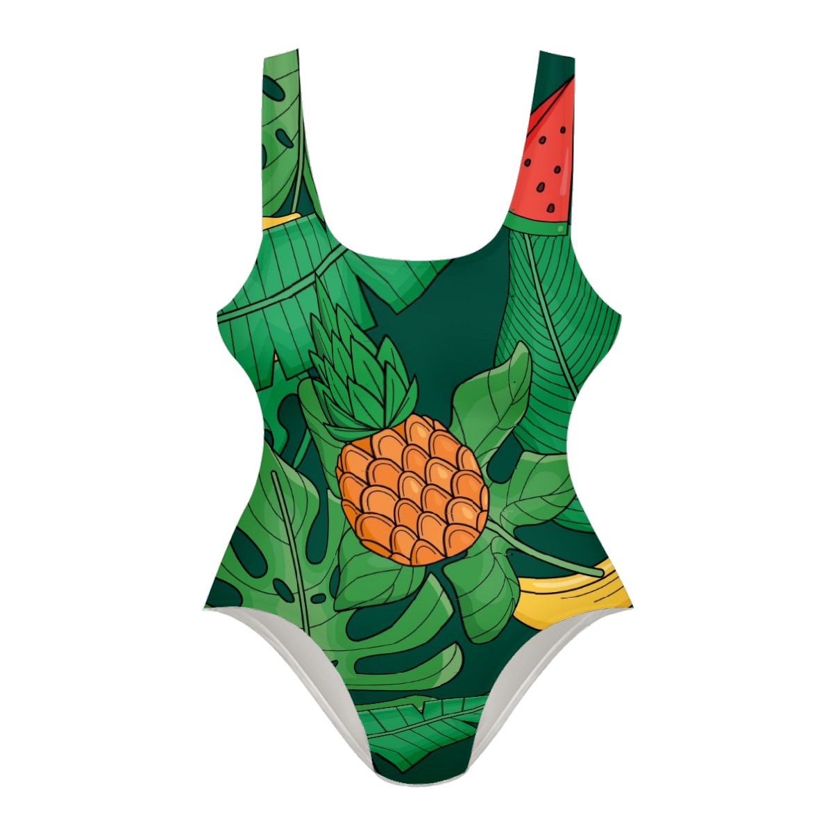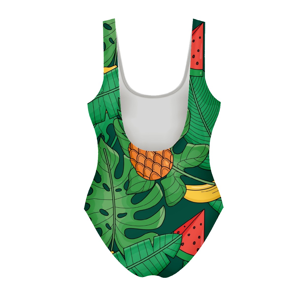 Women Swimsuit Tropical Palm Tree Banana Watermelon Pineapple One Piece Swimwear
