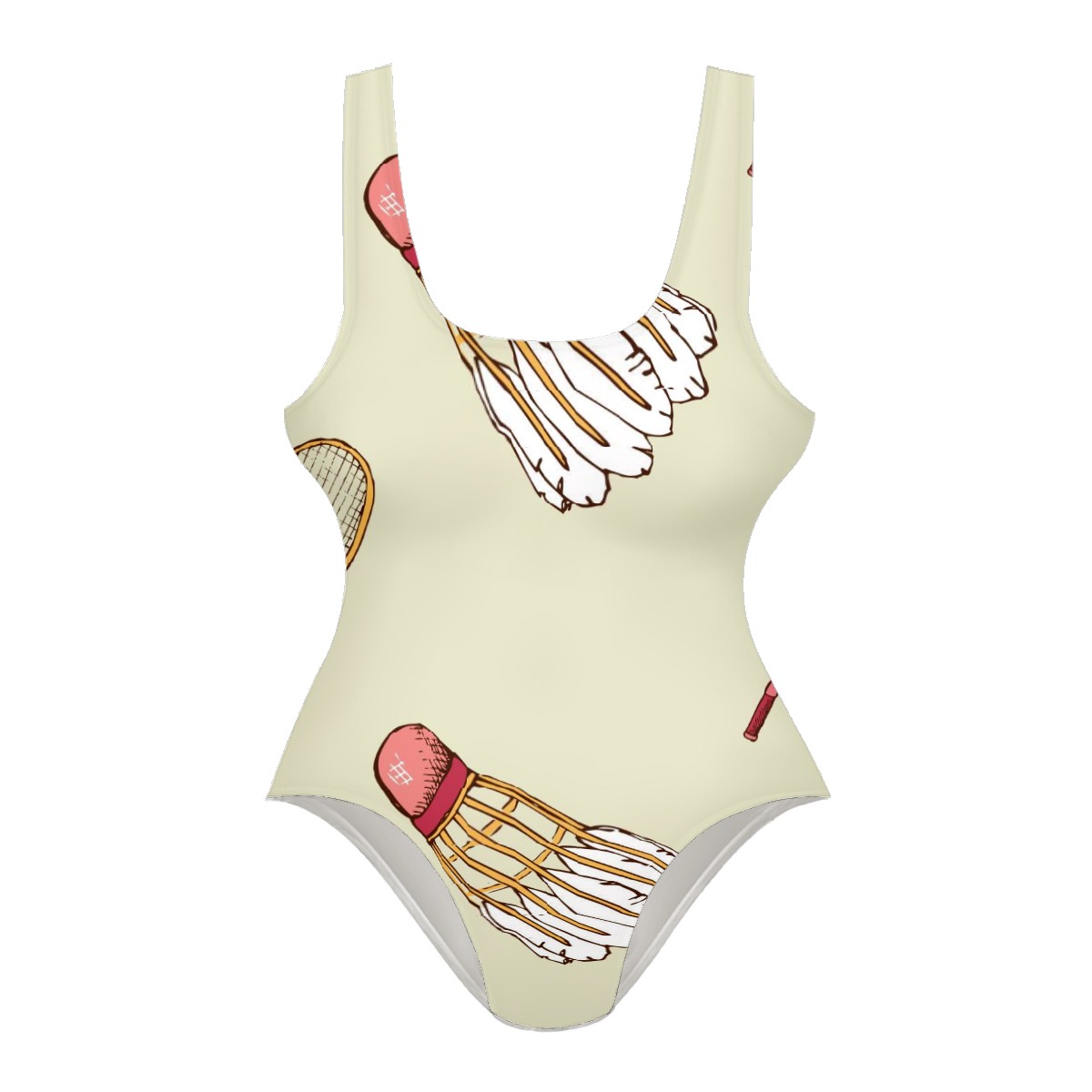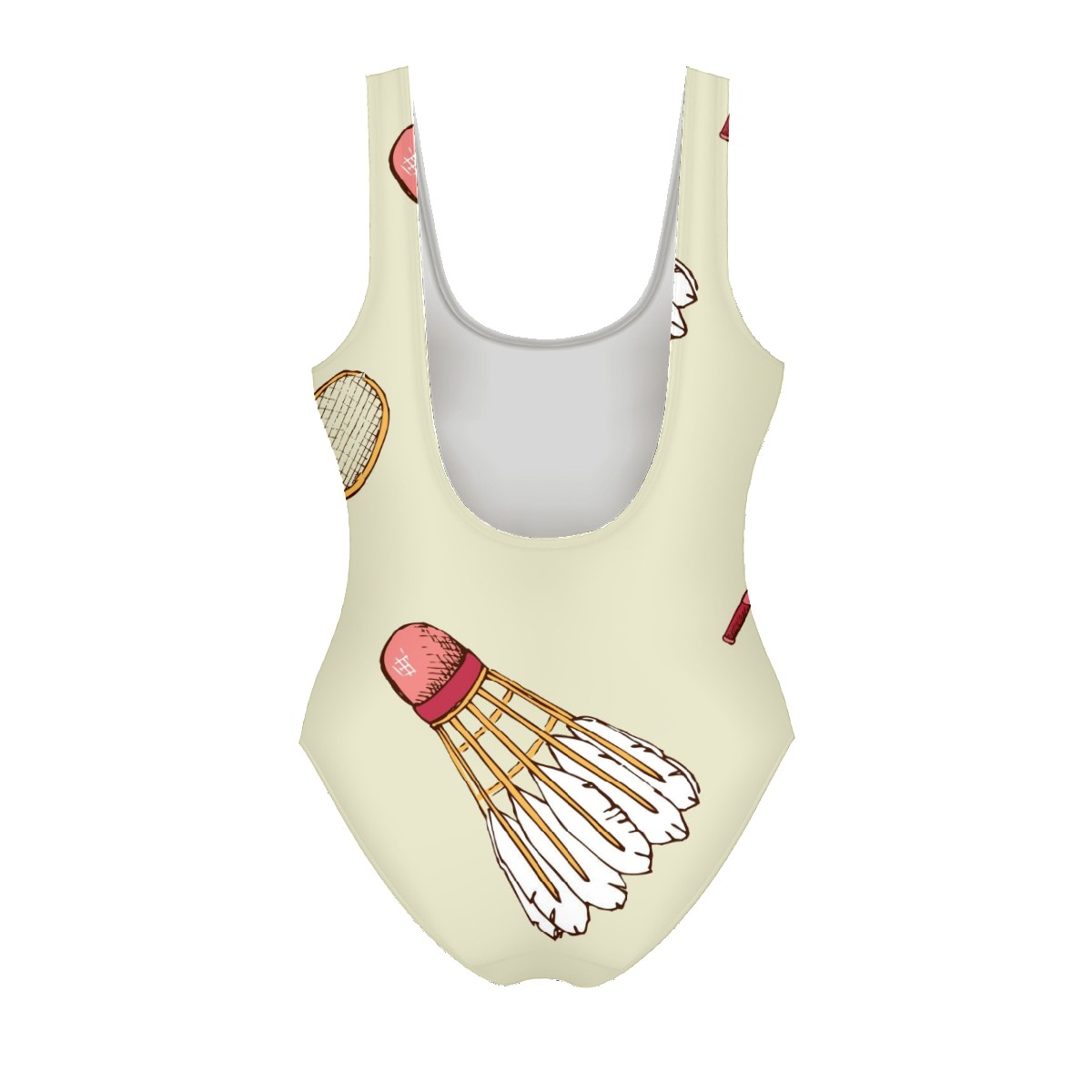 Women Swimsuit Sport Badmintons Racket Pattern One Piece Swimwear