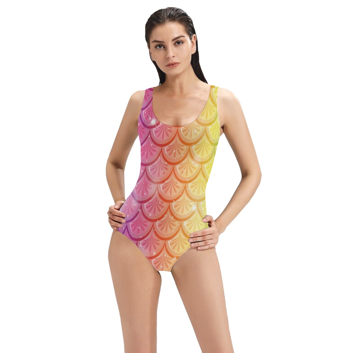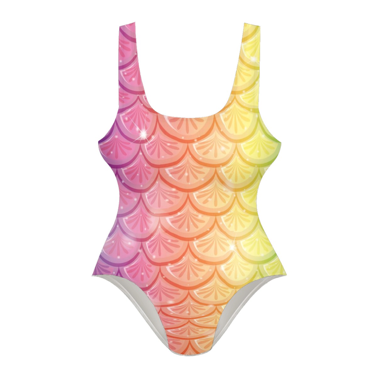 Women Swimsuit Seamless Purple Yellow Pink Mermaid Scale One Piece Swimwear