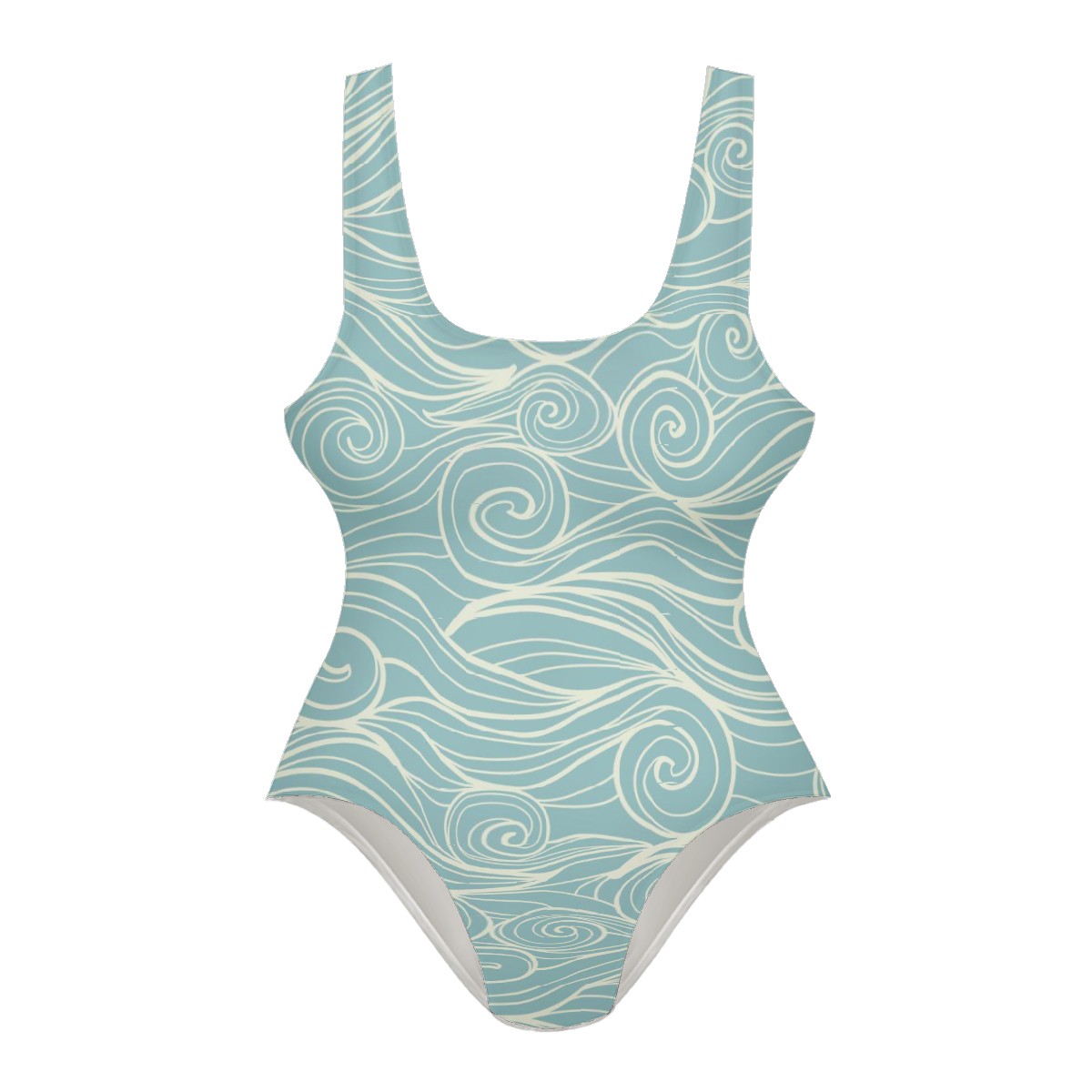 Women Swimsuit Sea Waves Light Blue Art One Piece Swimwear