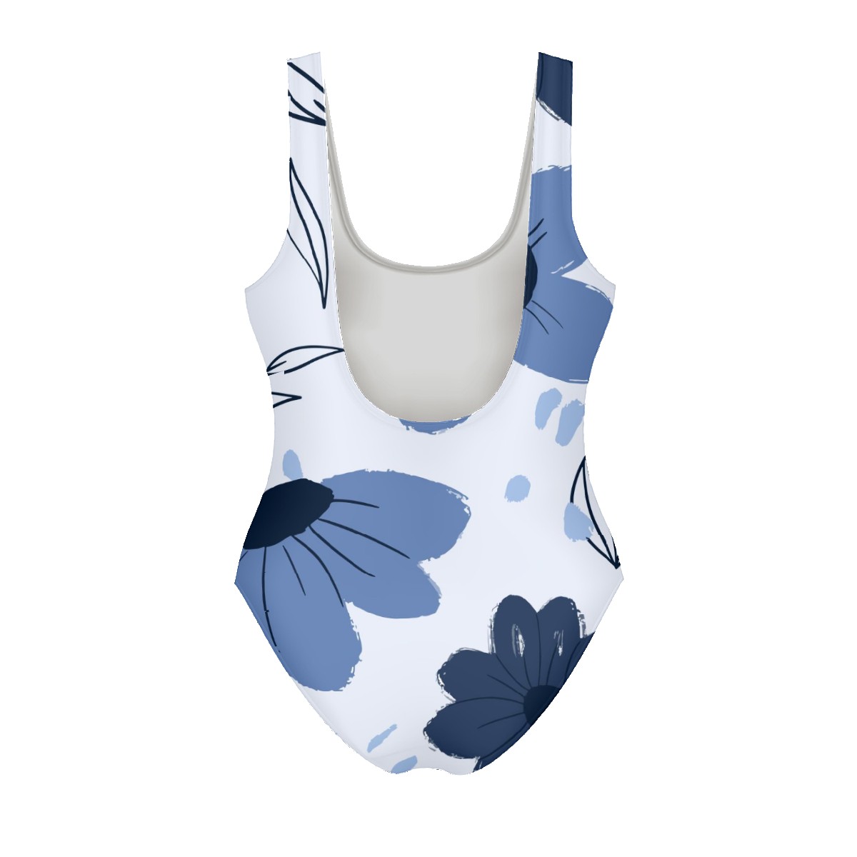 Women Swimsuit Pretty Floral Painted Blue Color One Piece Swimwear