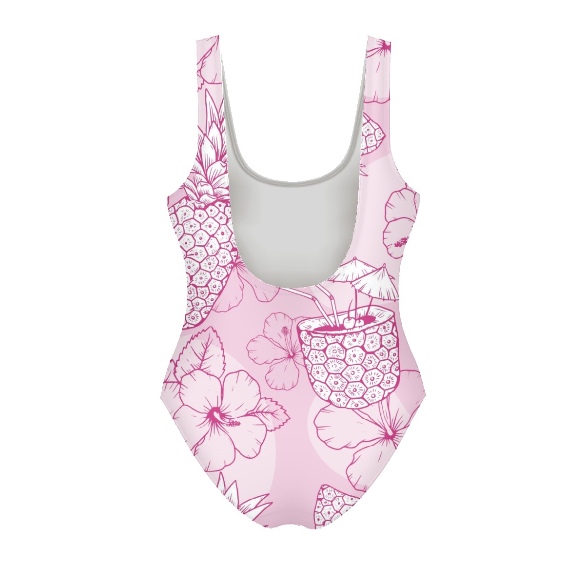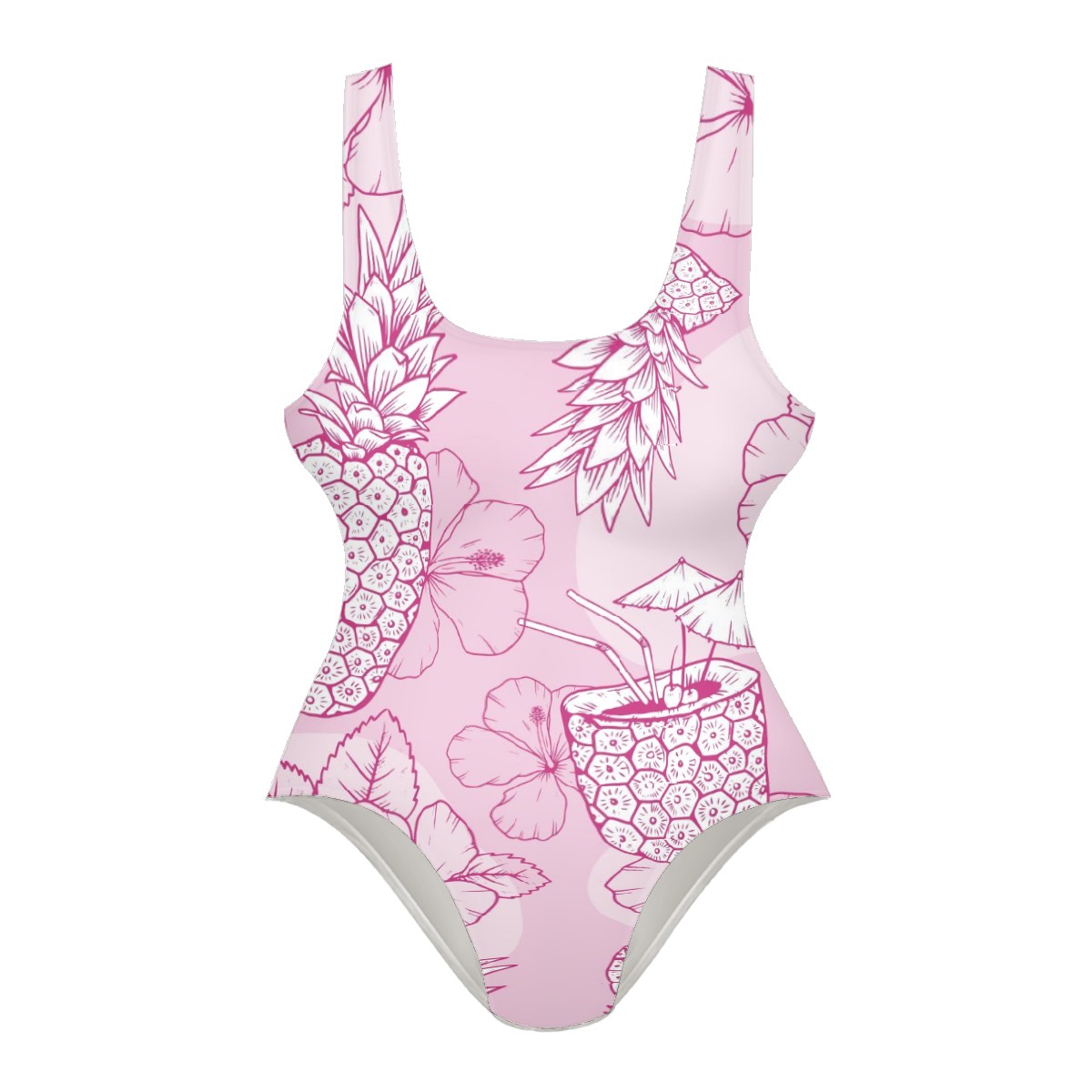 Women Swimsuit Hand Drawn Pineapple Floral Tropical Pink One Piece Swimwear