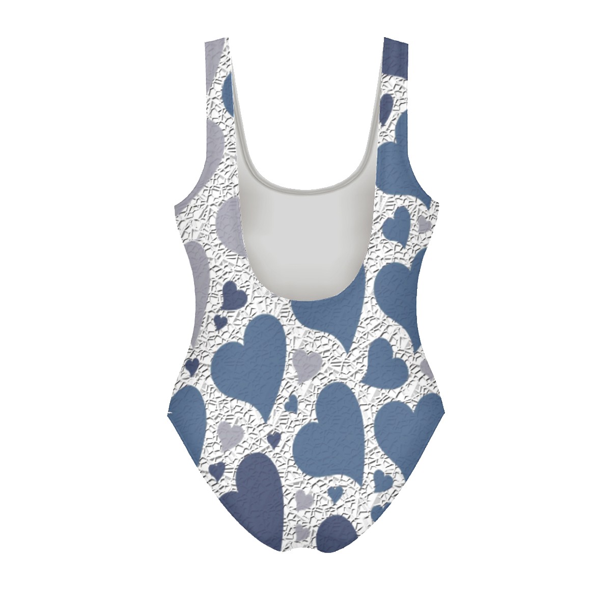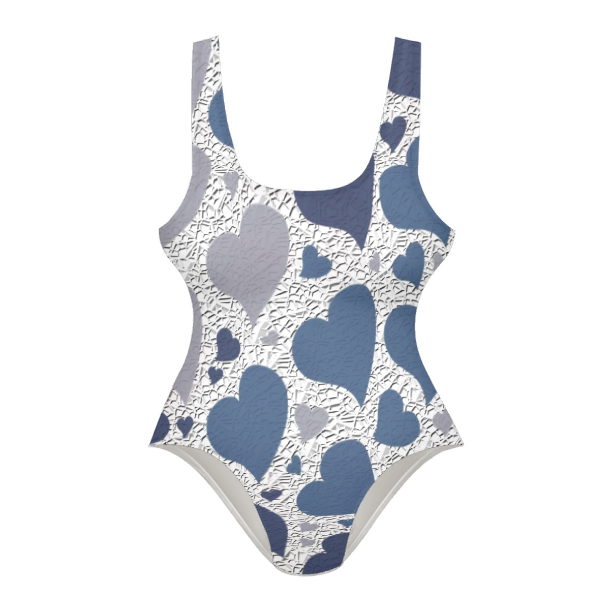 Women Swimsuit Grey Blue Love Heart Pattern One Piece Swimwear