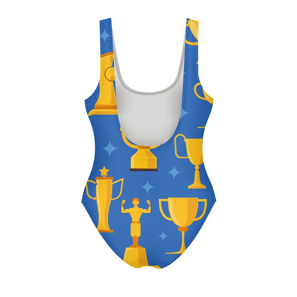 Women Swimsuit Golden Awards Cups Stars Blue One Piece Swimwear
